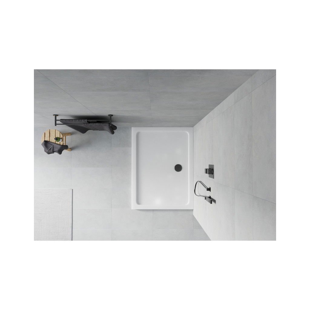 Mexen SLIM - Obdĺžniková sprchová vanička 110x80x5cm + čierny sifón, biela, 40108011B