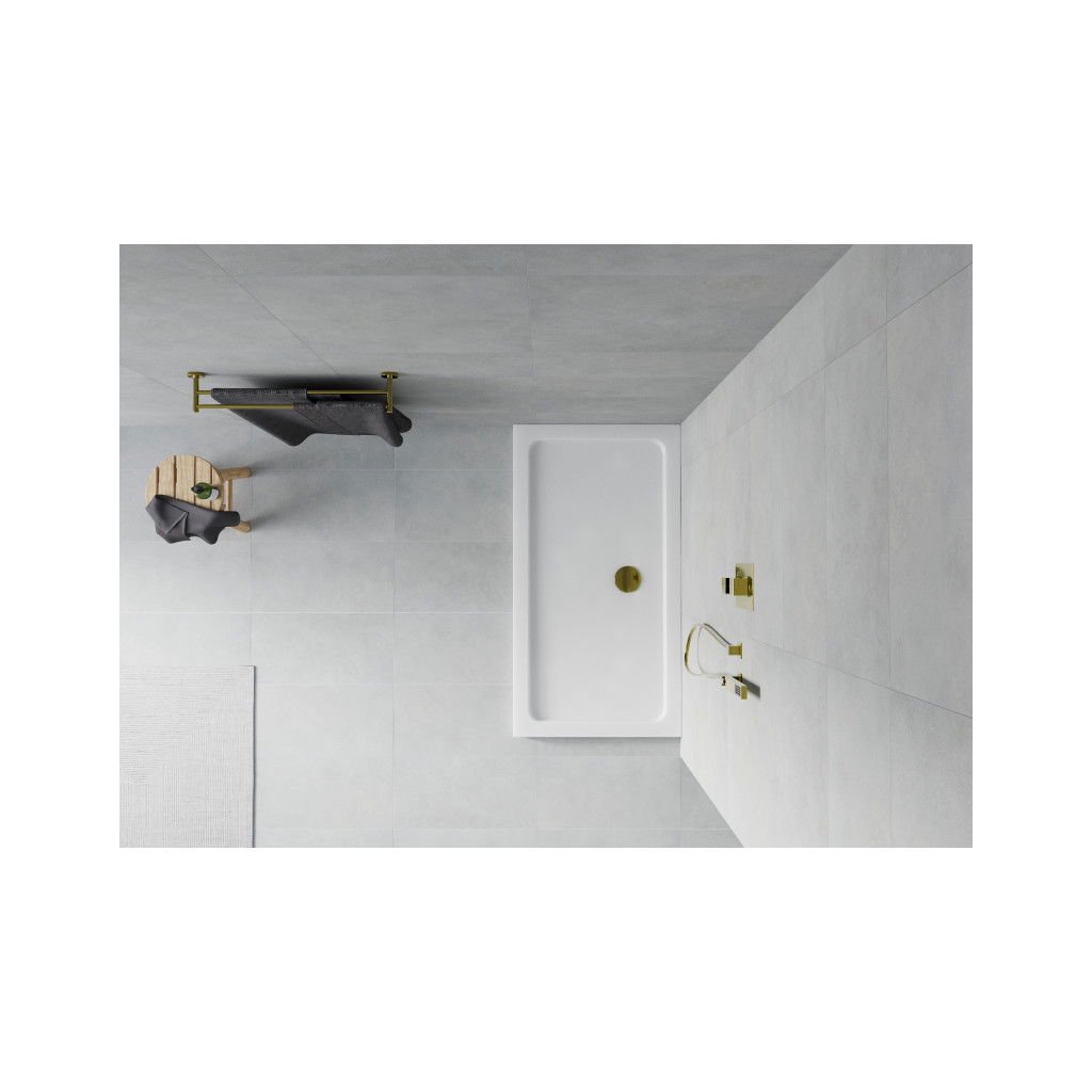 Mexen SLIM - Obdĺžniková sprchová vanička 140x70x5cm + zlatý sifón, biela, 40107014G
