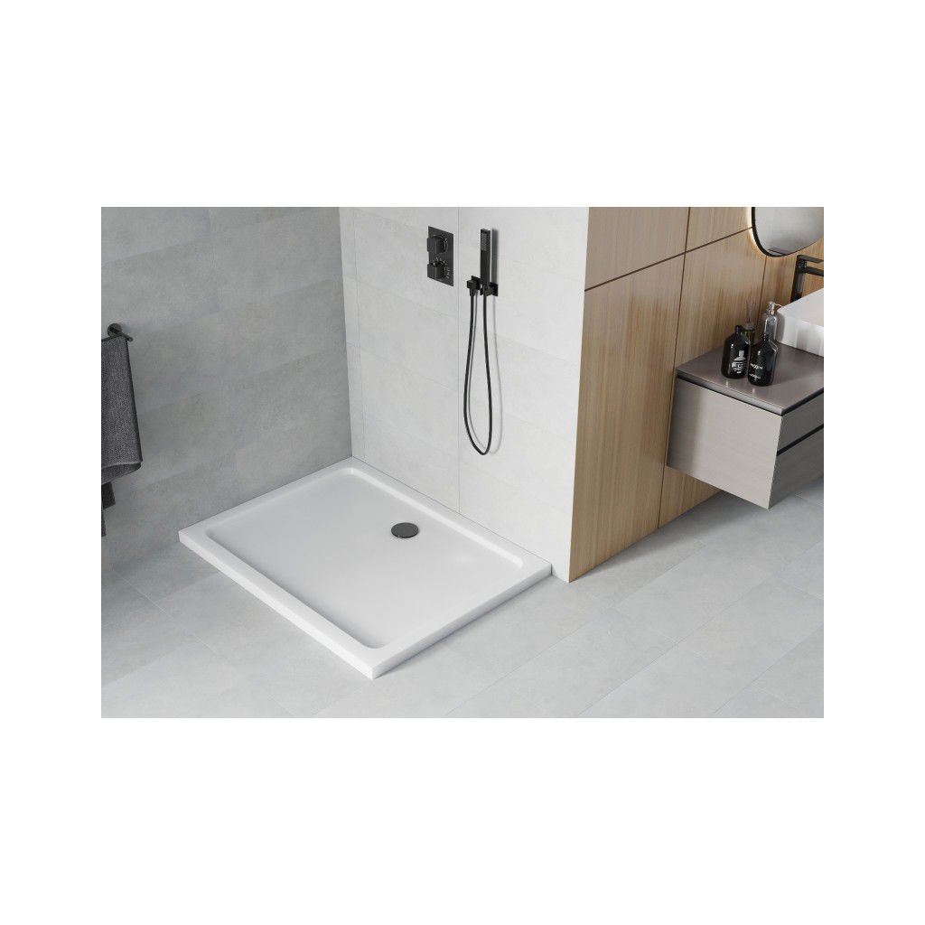 Mexen SLIM - Obdĺžniková sprchová vanička 140x80 cm + čierny sifón, biela, 40107011B