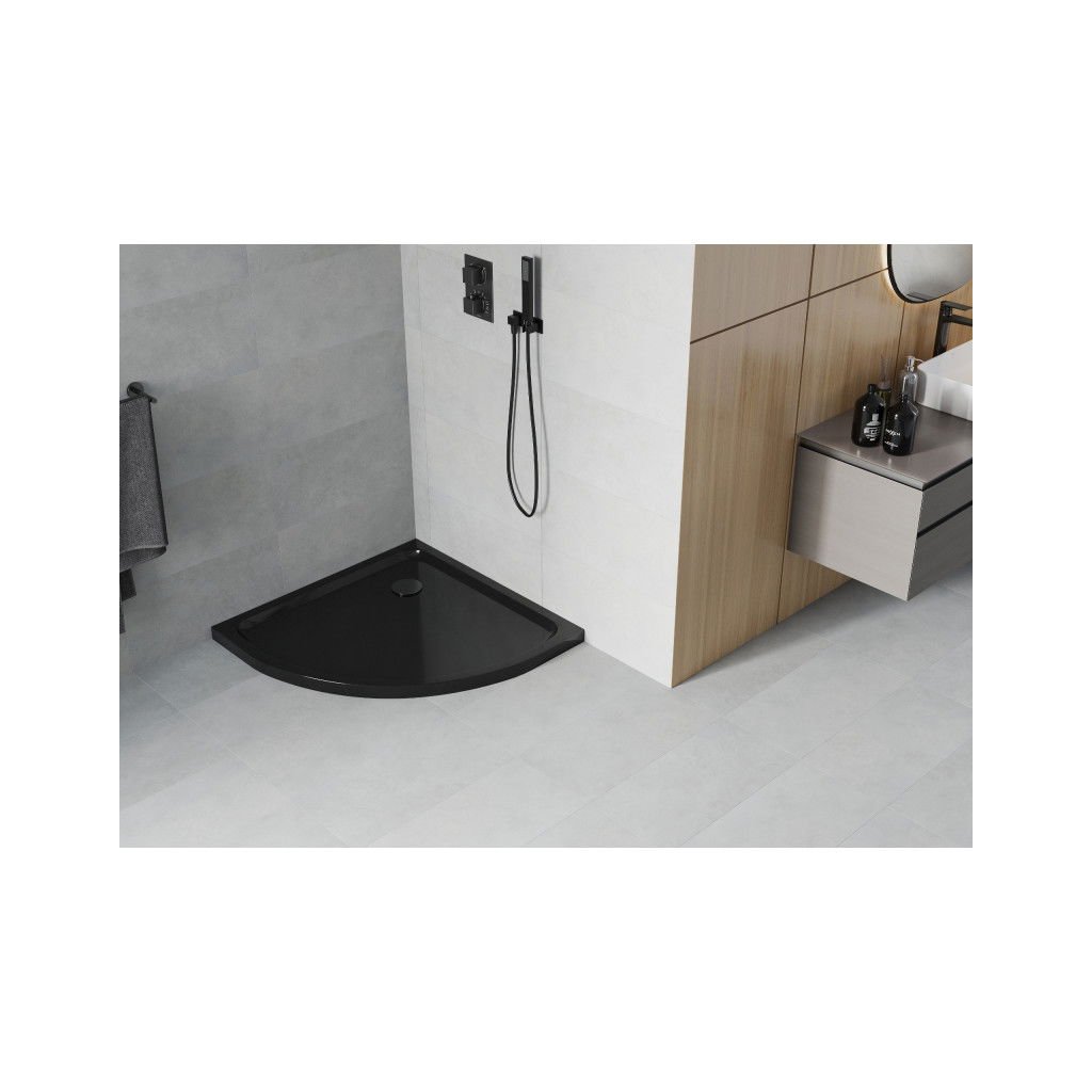 Mexen SLIM - Štvrťkruhová sprchová vanička 70x70x5cm + čierny sifón, čierna, 41707070B