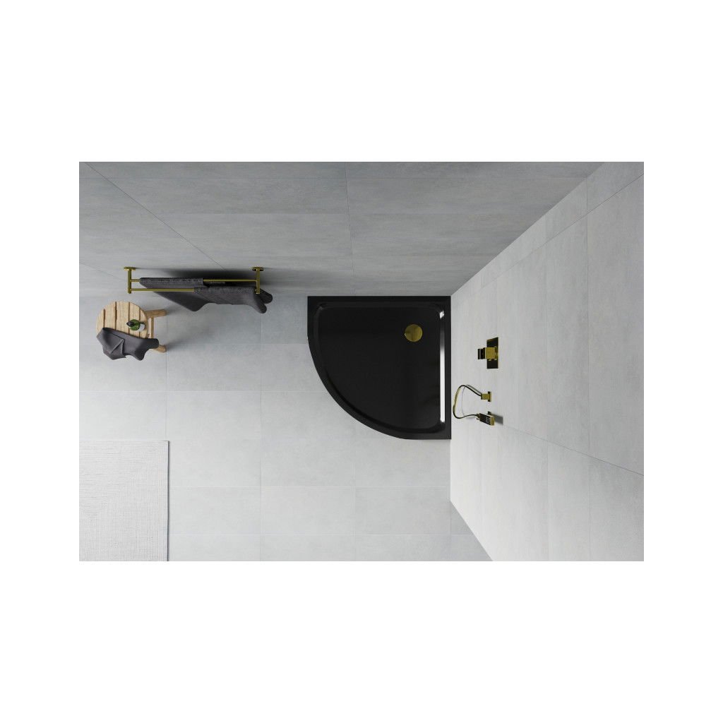 Mexen SLIM - Štvrťkruhová sprchová vanička 70x70x5cm + zlatý sifón, čierna, 41707070G