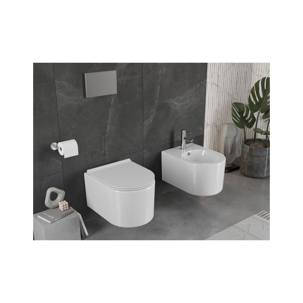 Mexen Sofia, závesná WC misa 490x360x355 mm, Rimless Tornádo + toaletné WC sedadlo z duroplastu, biela lesklá, 30540500