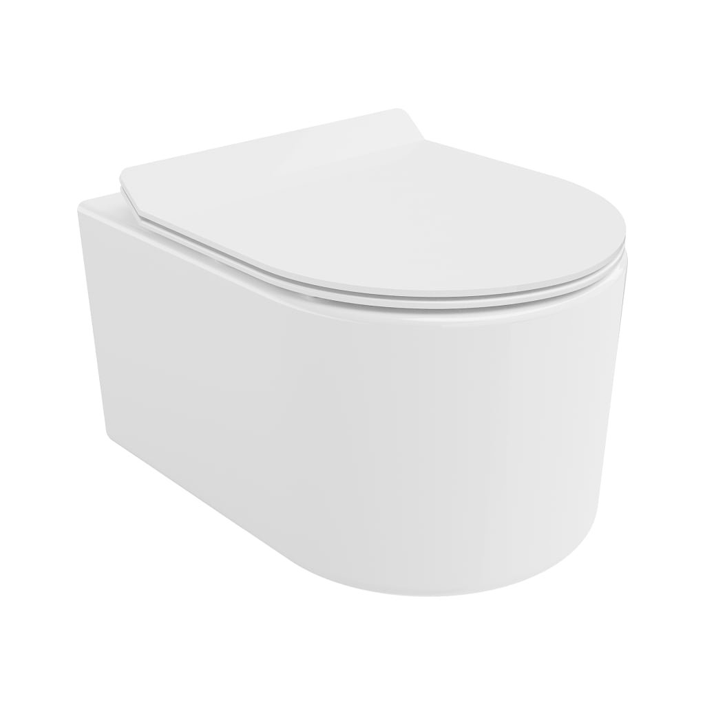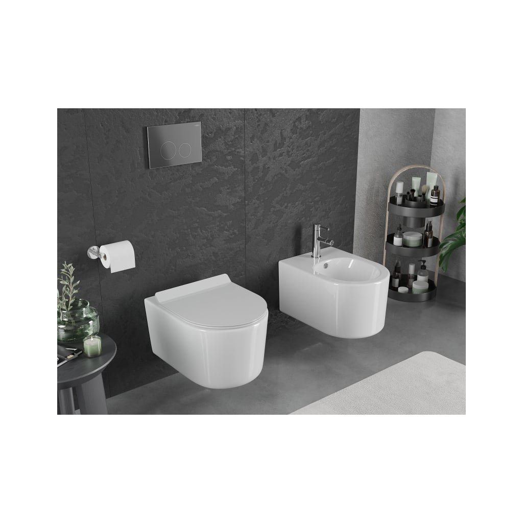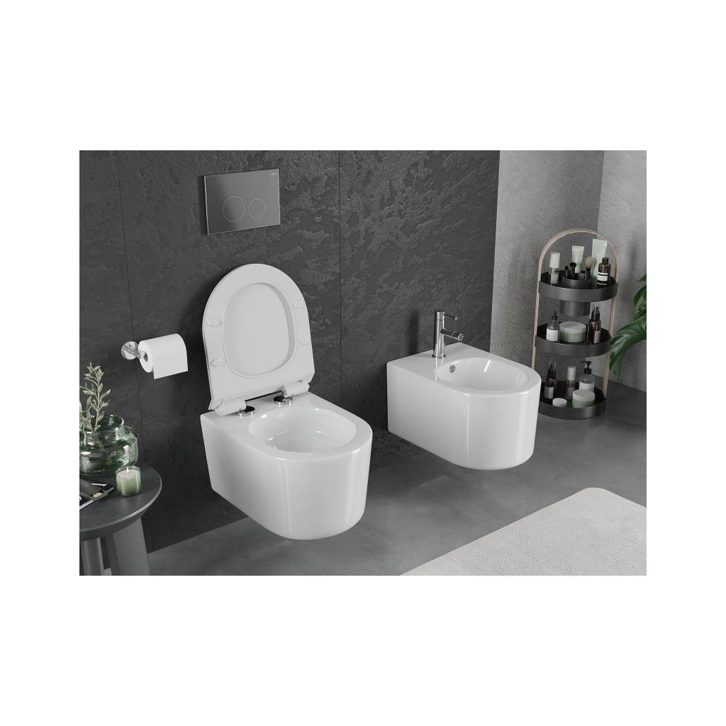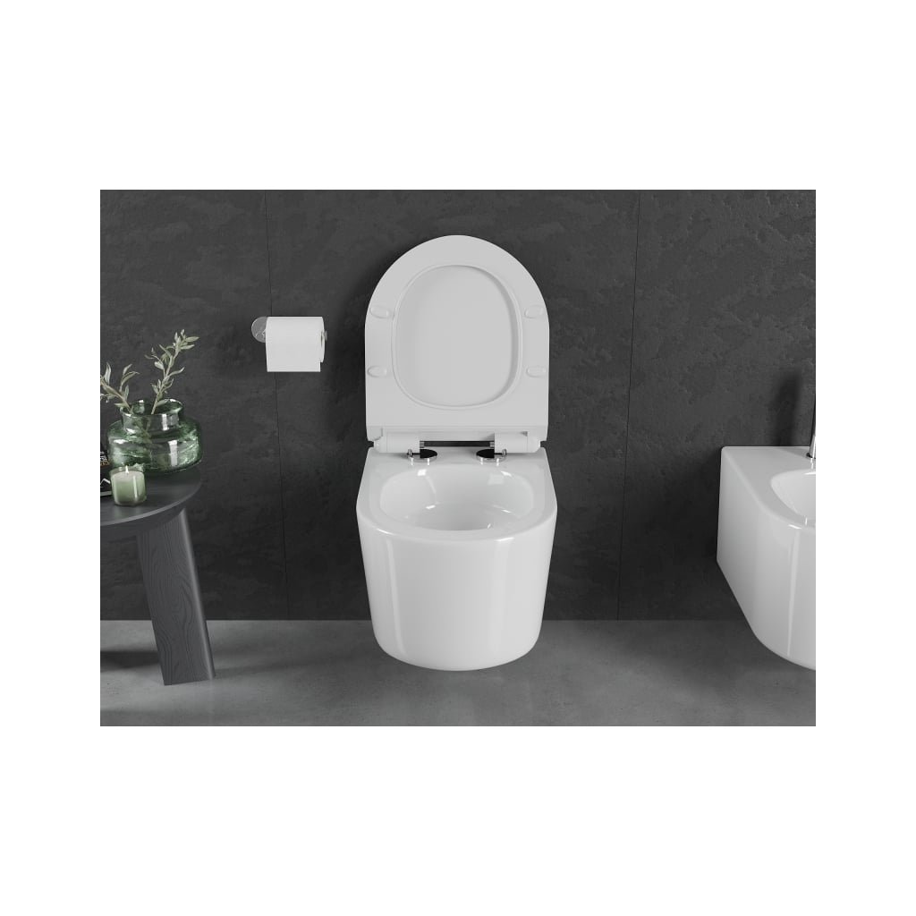 Mexen Sofia, závesná WC misa 490x360x355 mm, Rimless Tornádo + WC sedadlo z duroplastu, biela lesklá, 30540100T