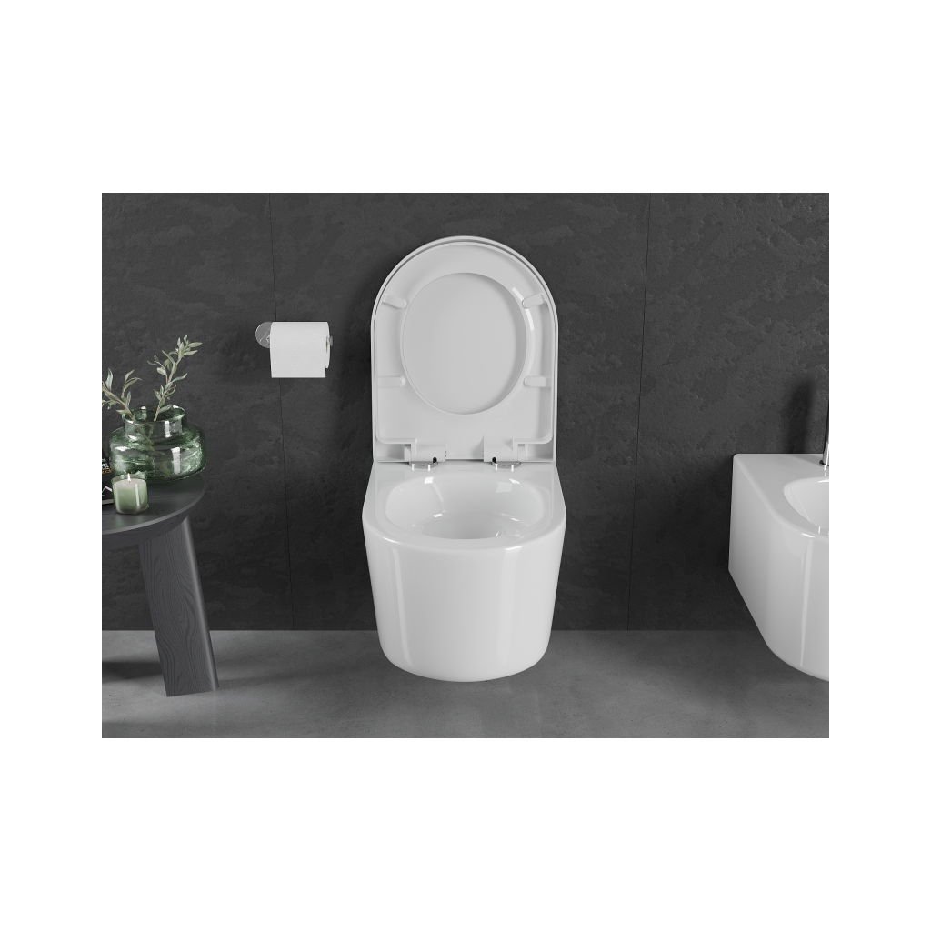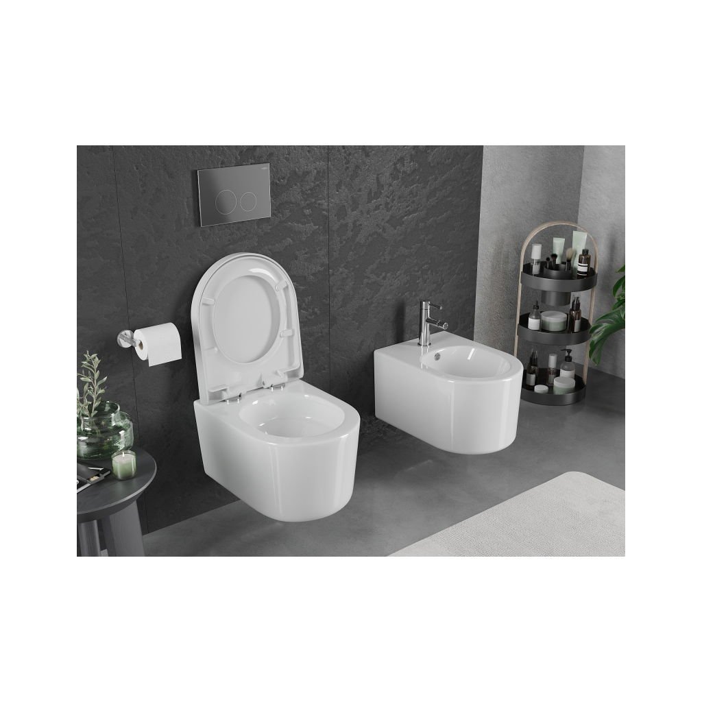 Mexen Sofia, závesná WC misa 490x360x355 mm, Rimless Tornádo + WC sedadlo z duroplastu, biela lesklá, 30540200T