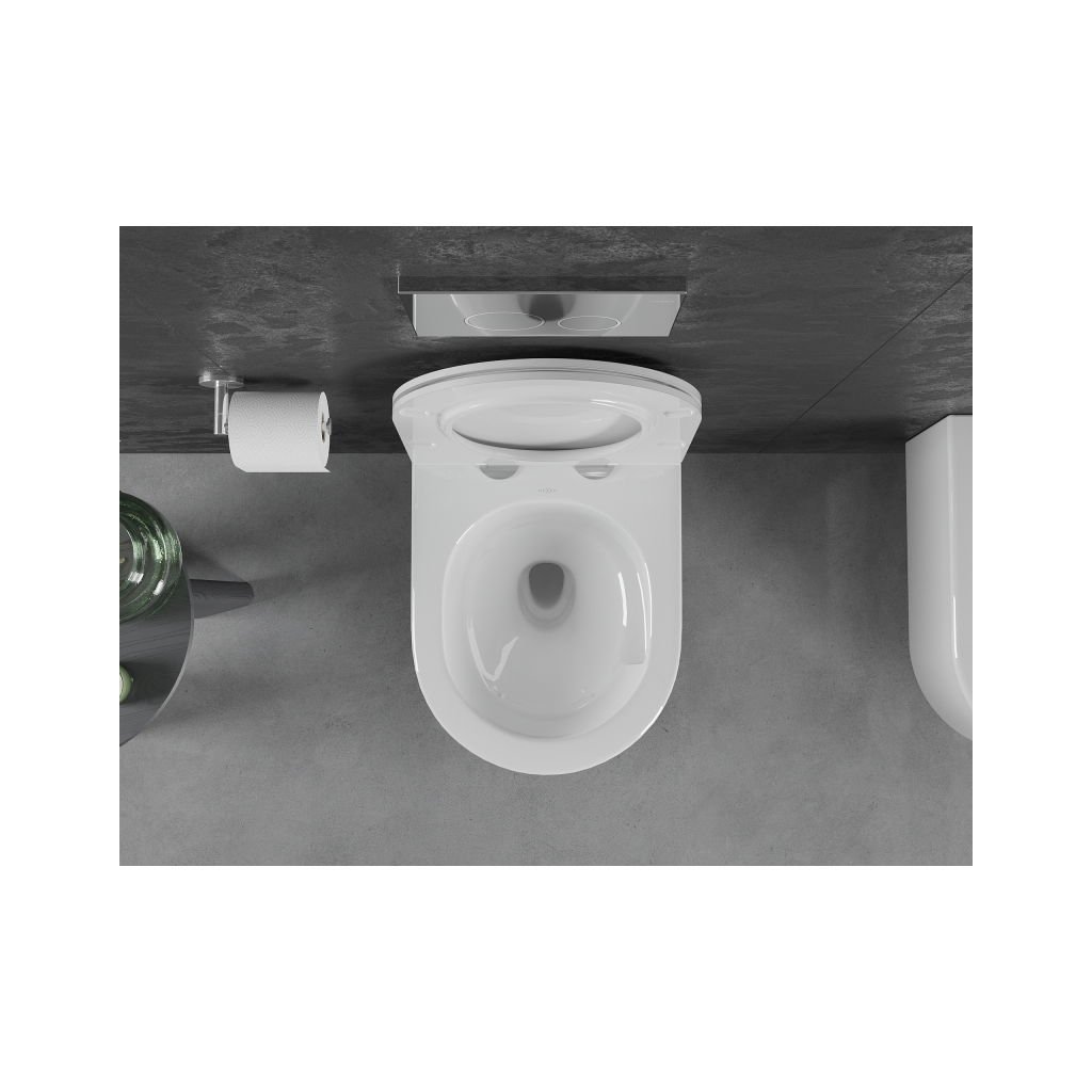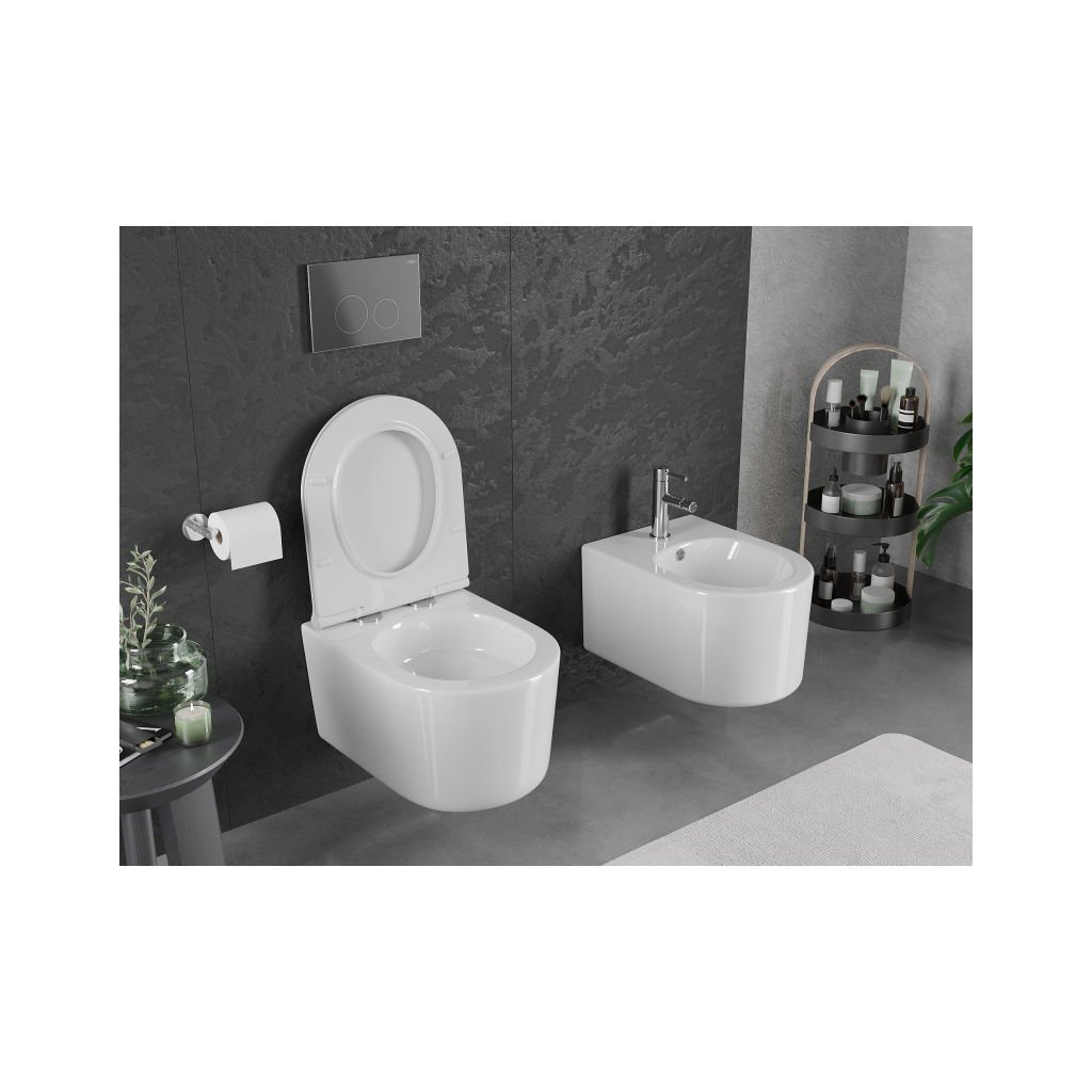 Mexen Sofia, závesná WC misa 490x360x355 mm, Rimless Tornádo + WC sedadlo z duroplastu, biela lesklá, 30540500T