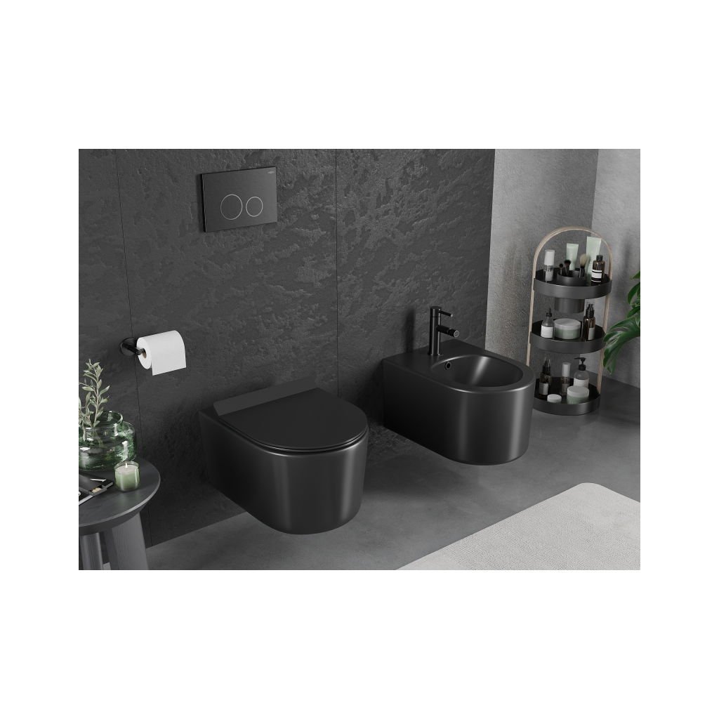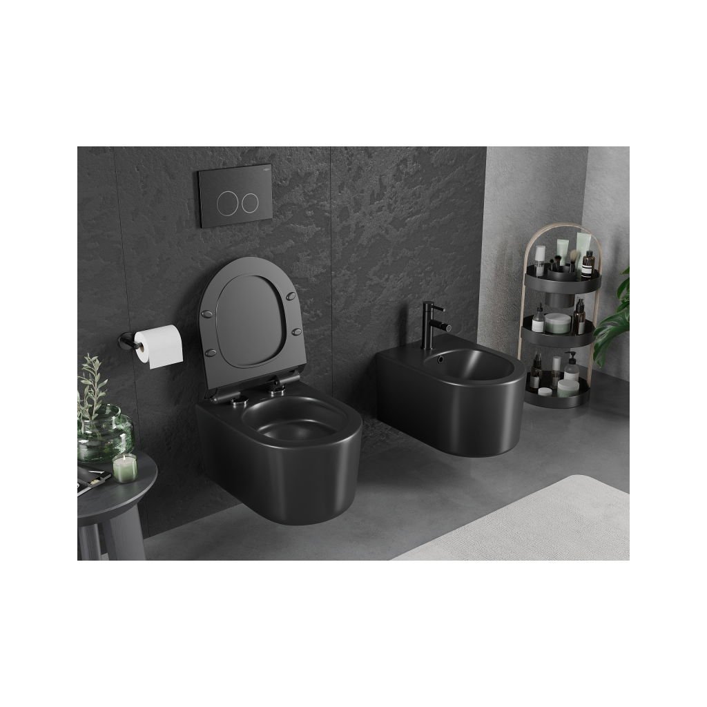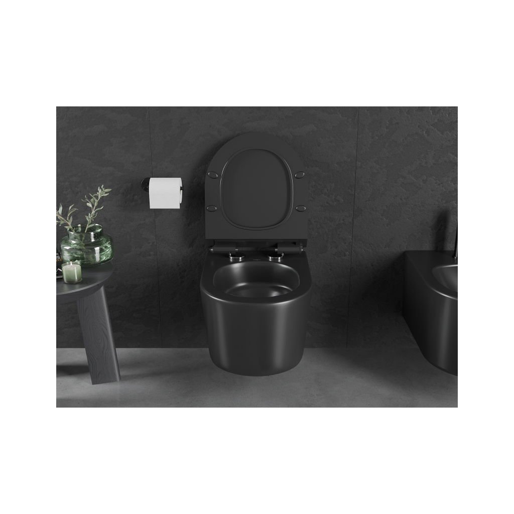 Mexen Sofia, závesná WC misa 490x360x355 mm, Rimless Tornádo + WC sedadlo z duroplastu, čierna matná, 30540185T