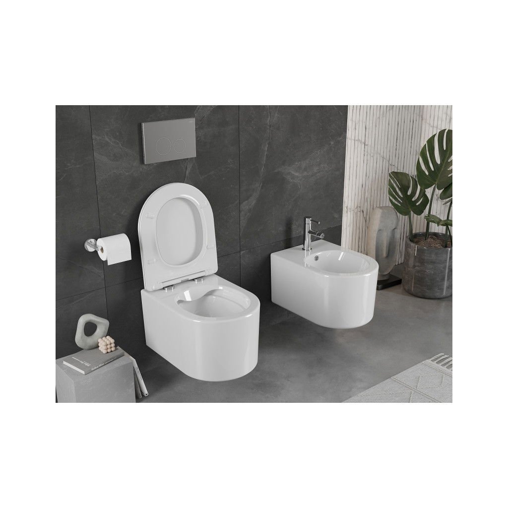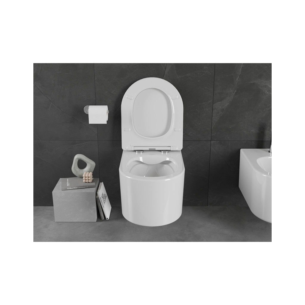 MEXEN SOFIA RIMLESS misa závesná so sedátkom voľne-padajúcim SLIM, 49 x 37 cm, biela, 30540300