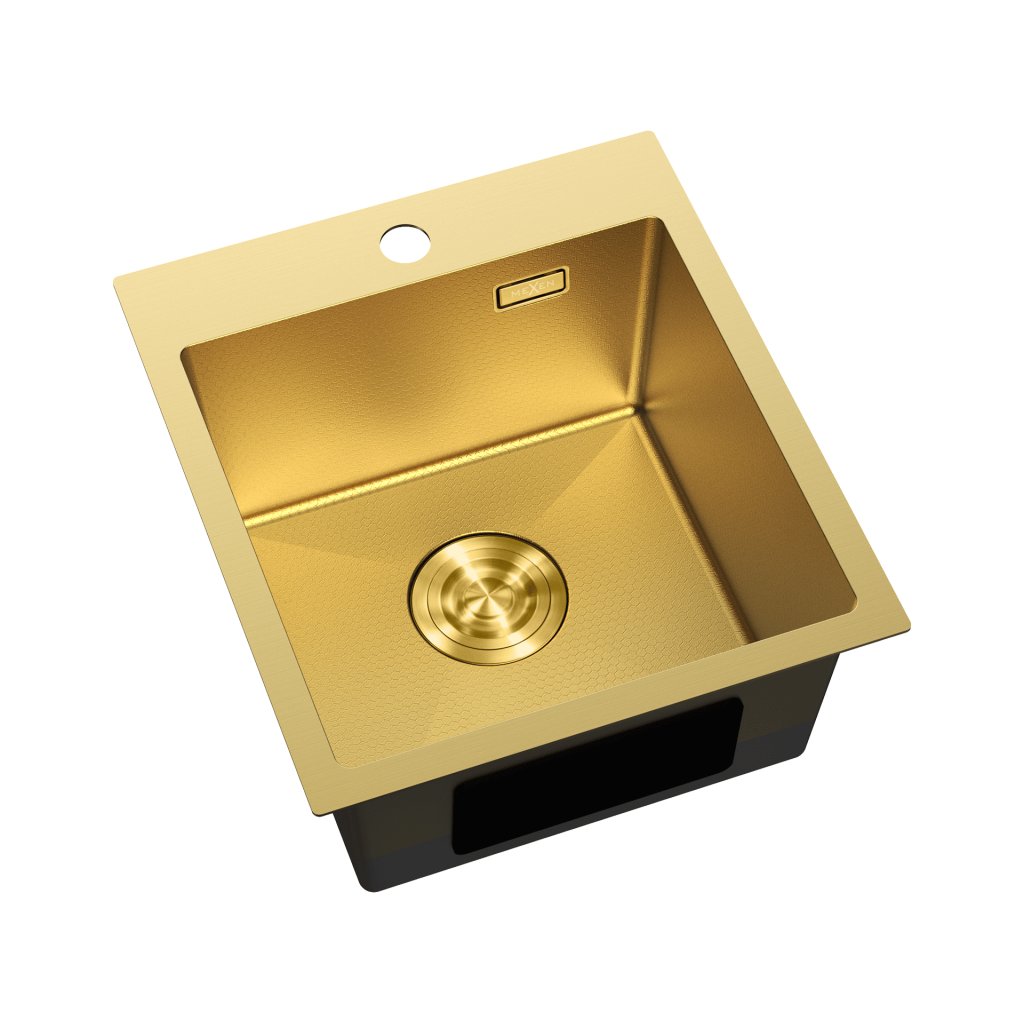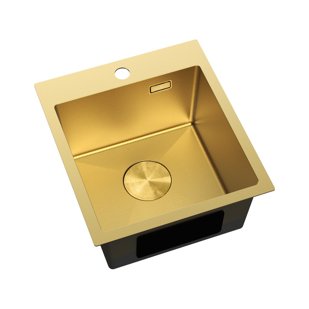 Mexen Solix, 1-komorový nerezový drez 400 x 450 mm, brúsená zlatá, vzor voština, 6401401000-55HC