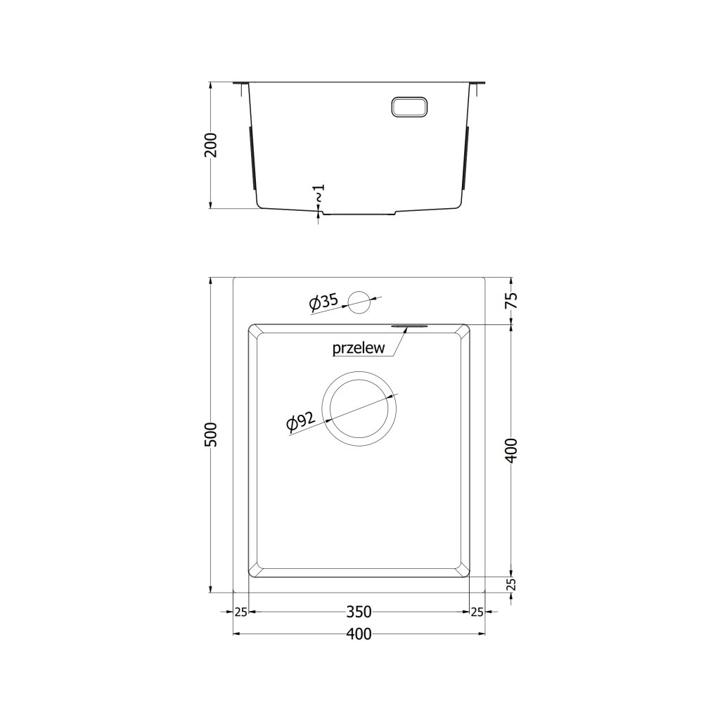 Mexen Solix, 1-komorový nerezový drez 400 x 500 mm, brúsena oceľ, vzor voština, 6406401000-01HC
