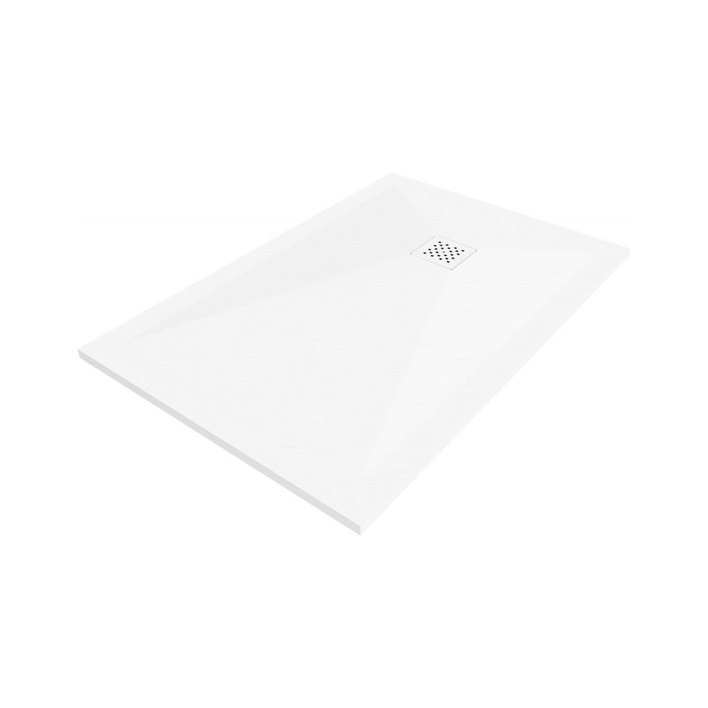 Mexen Stone+, obdĺžniková vanička z minerálneho kompozitu 100 x 90 cm, biela, biela krytka, 44109010-W