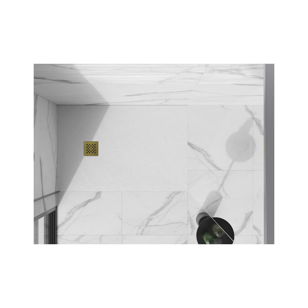 Mexen Stone+, obdĺžniková vanička z minerálneho kompozitu 120 x 80 cm, biela, zlatá lesklá krytka, 44108012-G