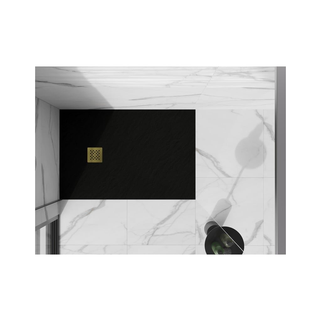 Mexen Stone+, obdĺžniková vanička z minerálneho kompozitu 120 x 80 cm, čierna, zlatá lesklá krytka, 44708012-G