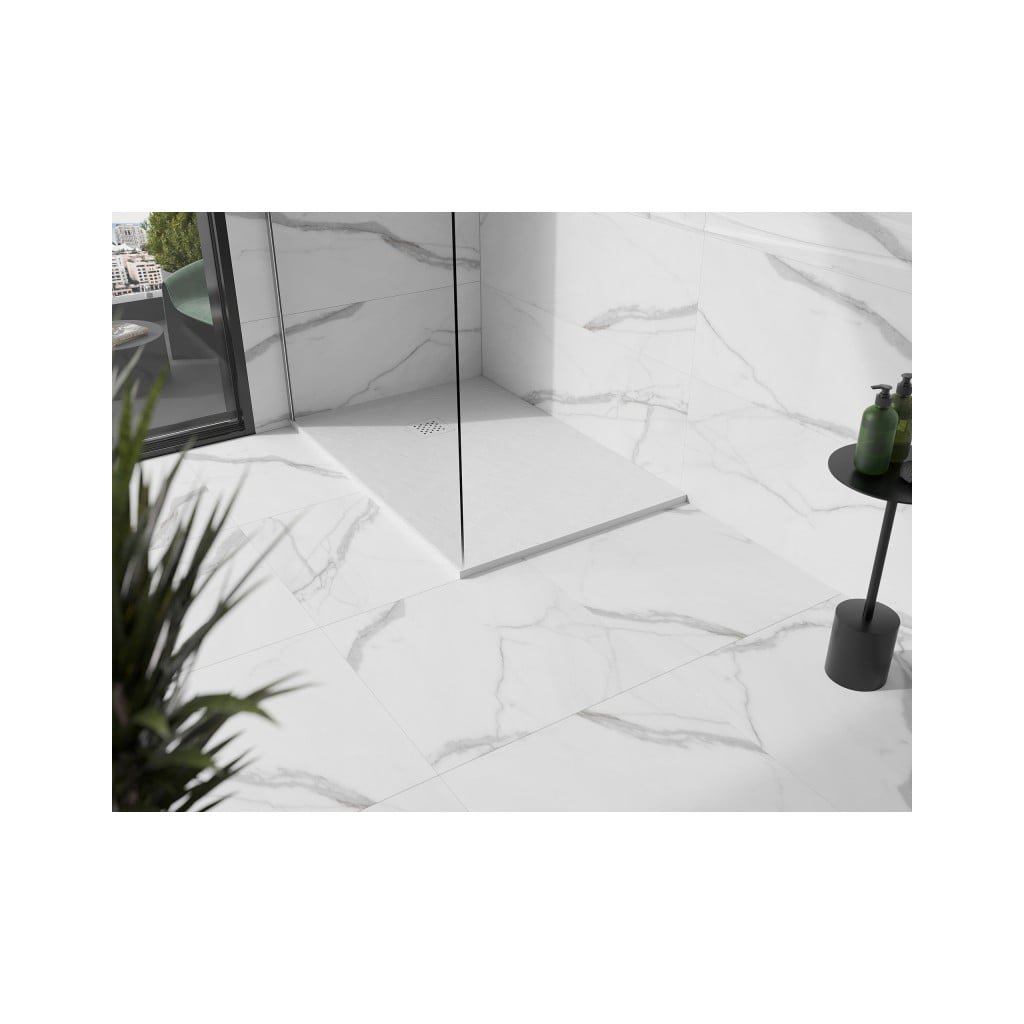 Mexen Stone+, obdĺžniková vanička z minerálneho kompozitu 120 x 90 cm, biela, biela krytka, 44109012-W