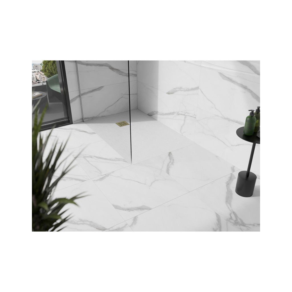 Mexen Stone+, obdĺžniková vanička z minerálneho kompozitu 140 x 70 cm, biela, zlatá lesklá krytka, 44107014-G