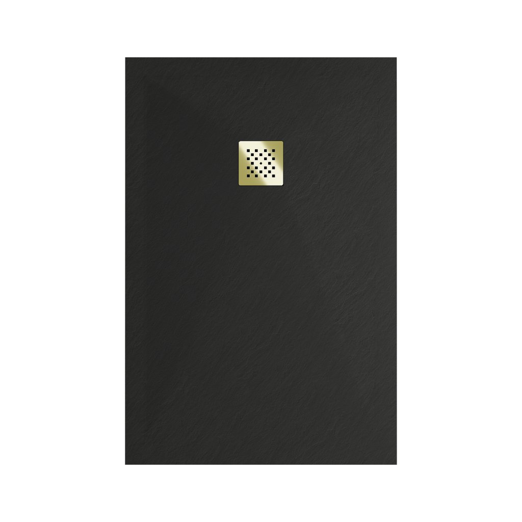 Mexen Stone+, obdĺžniková vanička z minerálneho kompozitu 140 x 90 cm, čierna, zlatá lesklá krytka, 44709014-G