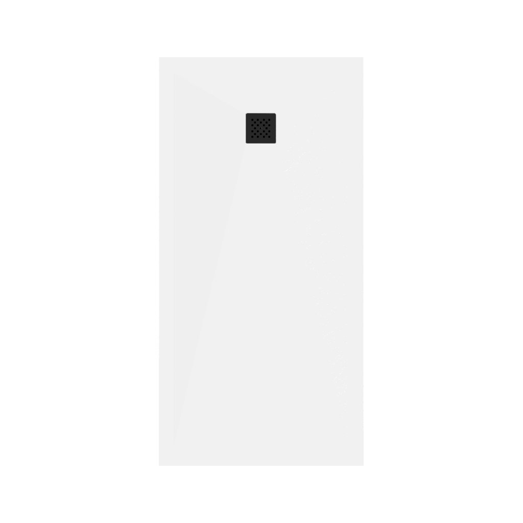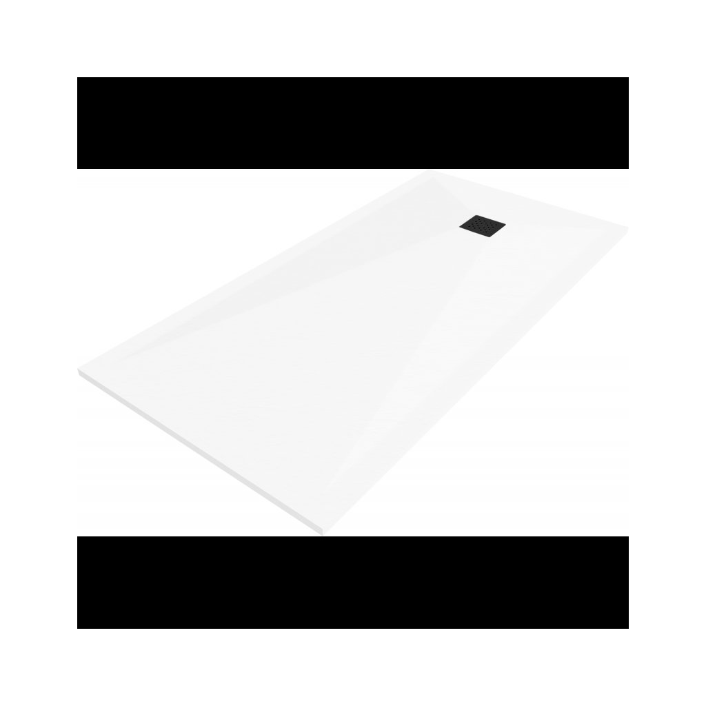 Mexen Stone+, obdĺžniková vanička z minerálneho kompozitu 160 x 70 cm, biela, čierna krytka, 44107016-B