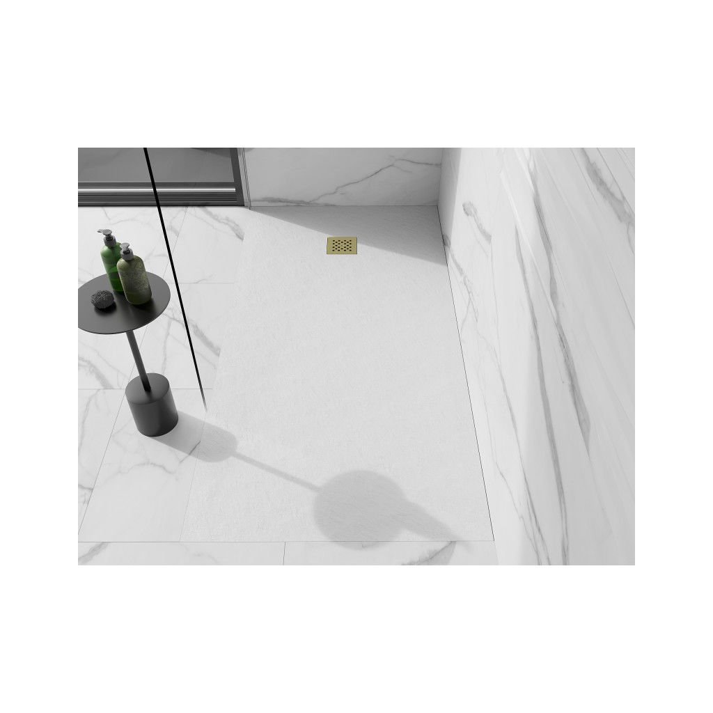 Mexen Stone+, obdĺžniková vanička z minerálneho kompozitu 160 x 70 cm, biela, zlatá lesklá krytka, 44107016-G