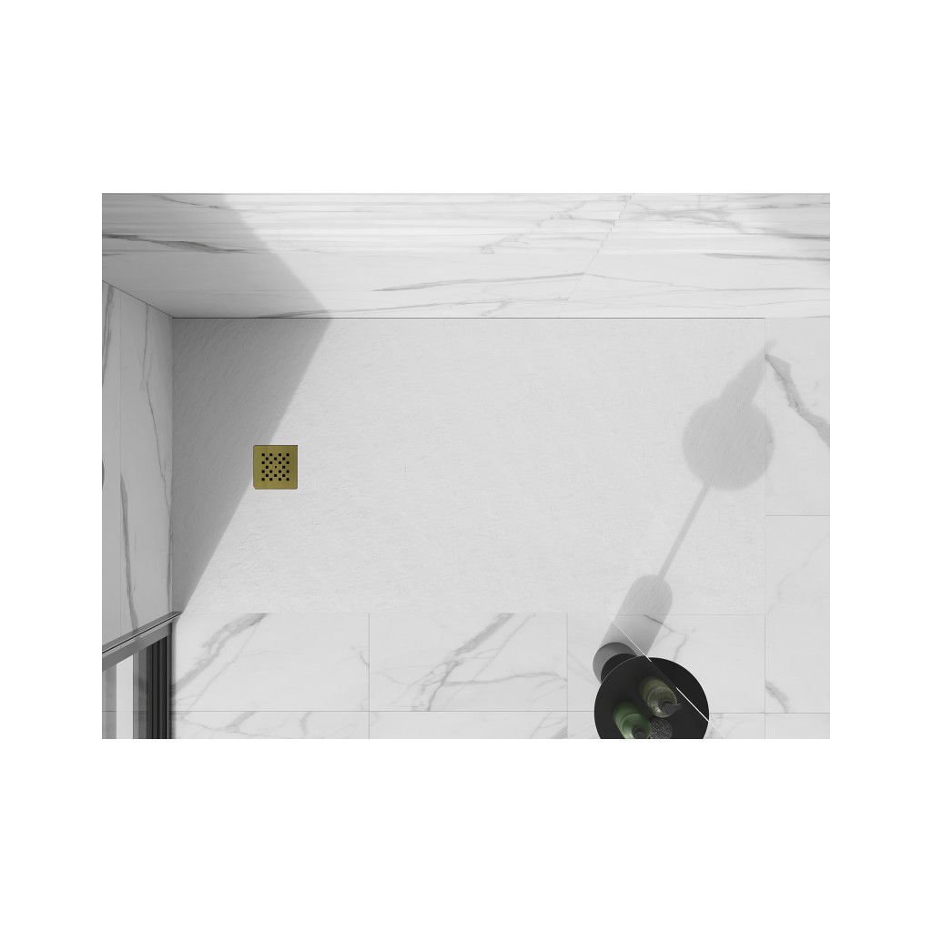 Mexen Stone+, obdĺžniková vanička z minerálneho kompozitu 160 x 80 cm, biela, zlatá lesklá krytka, 44108016-G