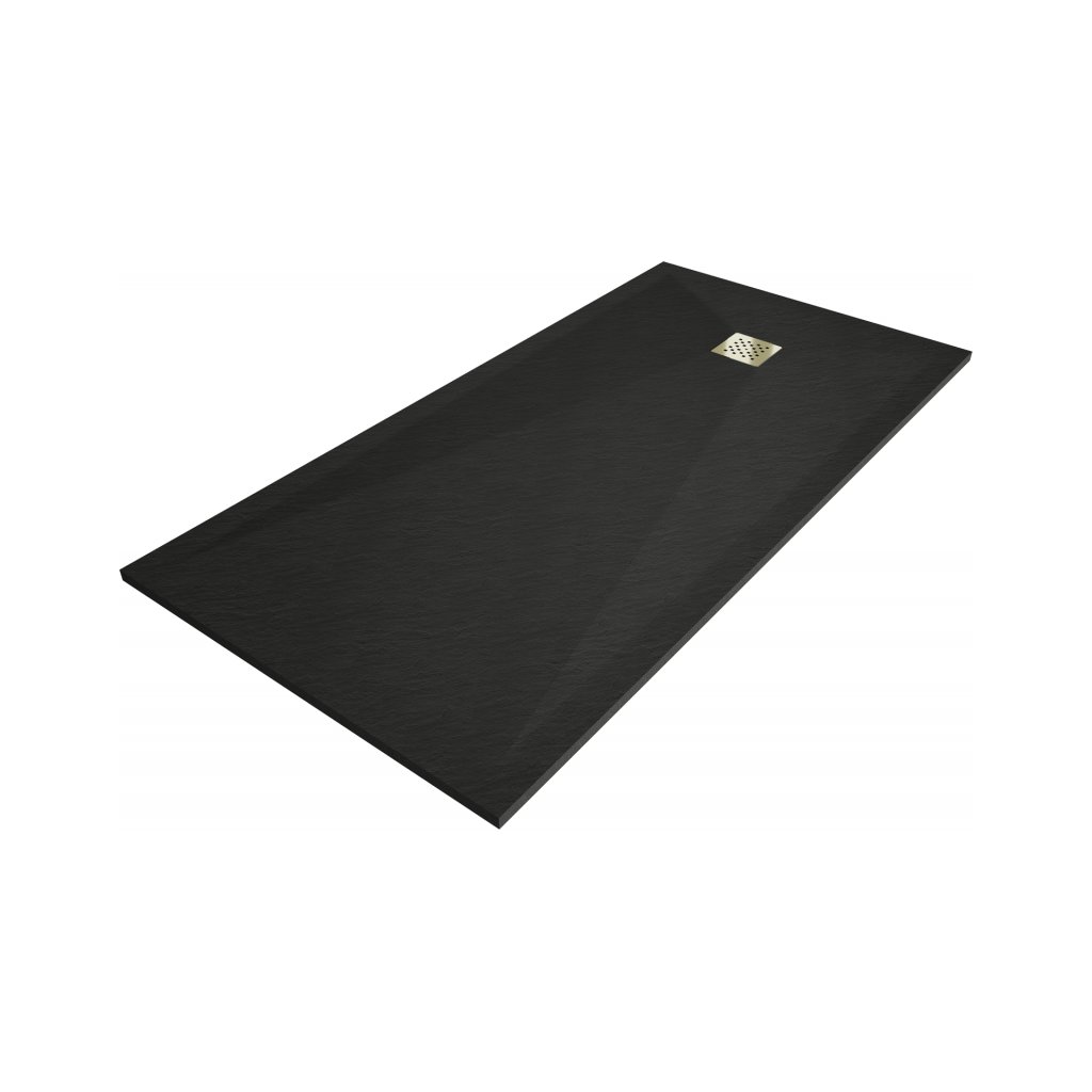 Mexen Stone+, obdĺžniková vanička z minerálneho kompozitu 180 x 100 cm, čierna, zlatá lesklá krytka, 44701018-G