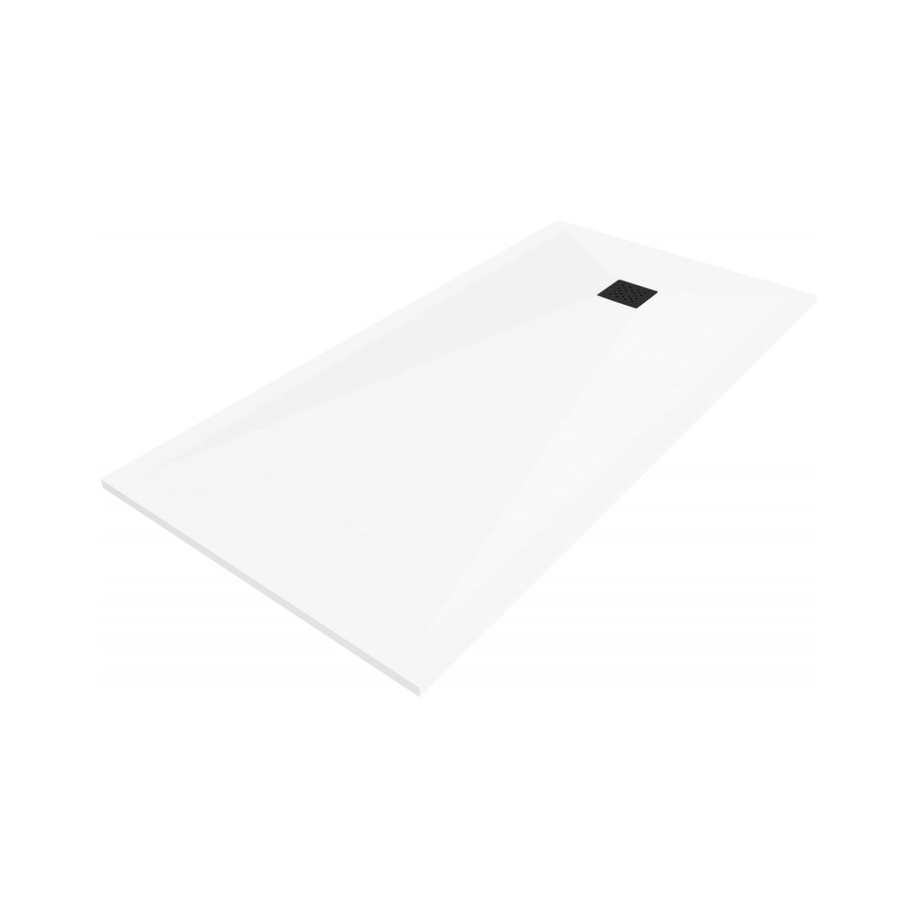 Mexen Stone+, obdĺžniková vanička z minerálneho kompozitu 180 x 70 cm, biela, čierna krytka, 44107018-B