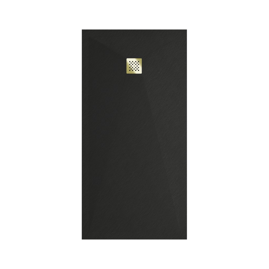 Mexen Stone+, obdĺžniková vanička z minerálneho kompozitu 180 x 90 cm, čierna, zlatá lesklá krytka, 44709018-G