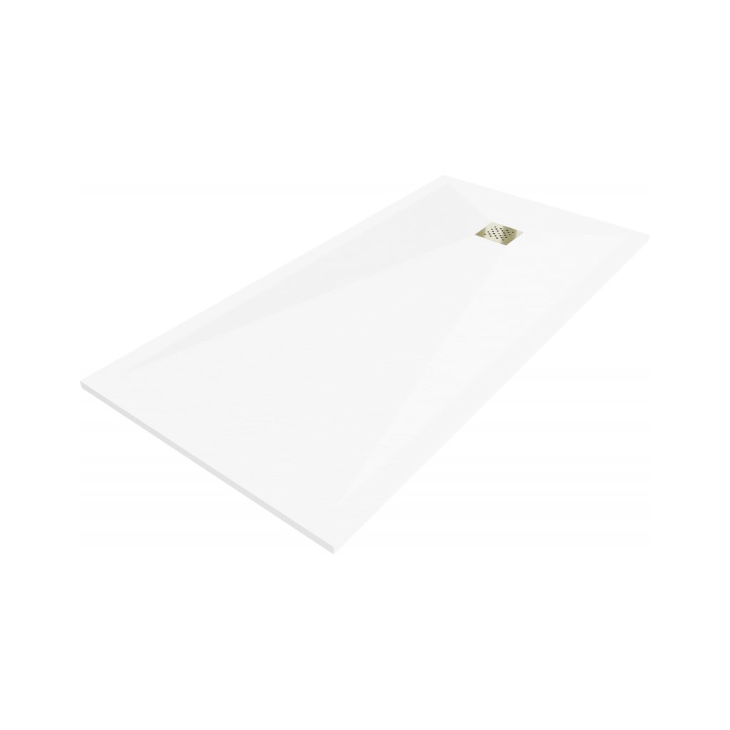 Mexen Stone+, obdĺžniková vanička z minerálneho kompozitu 200 x 80 cm, biela, zlatá lesklá krytka, 44108020-G