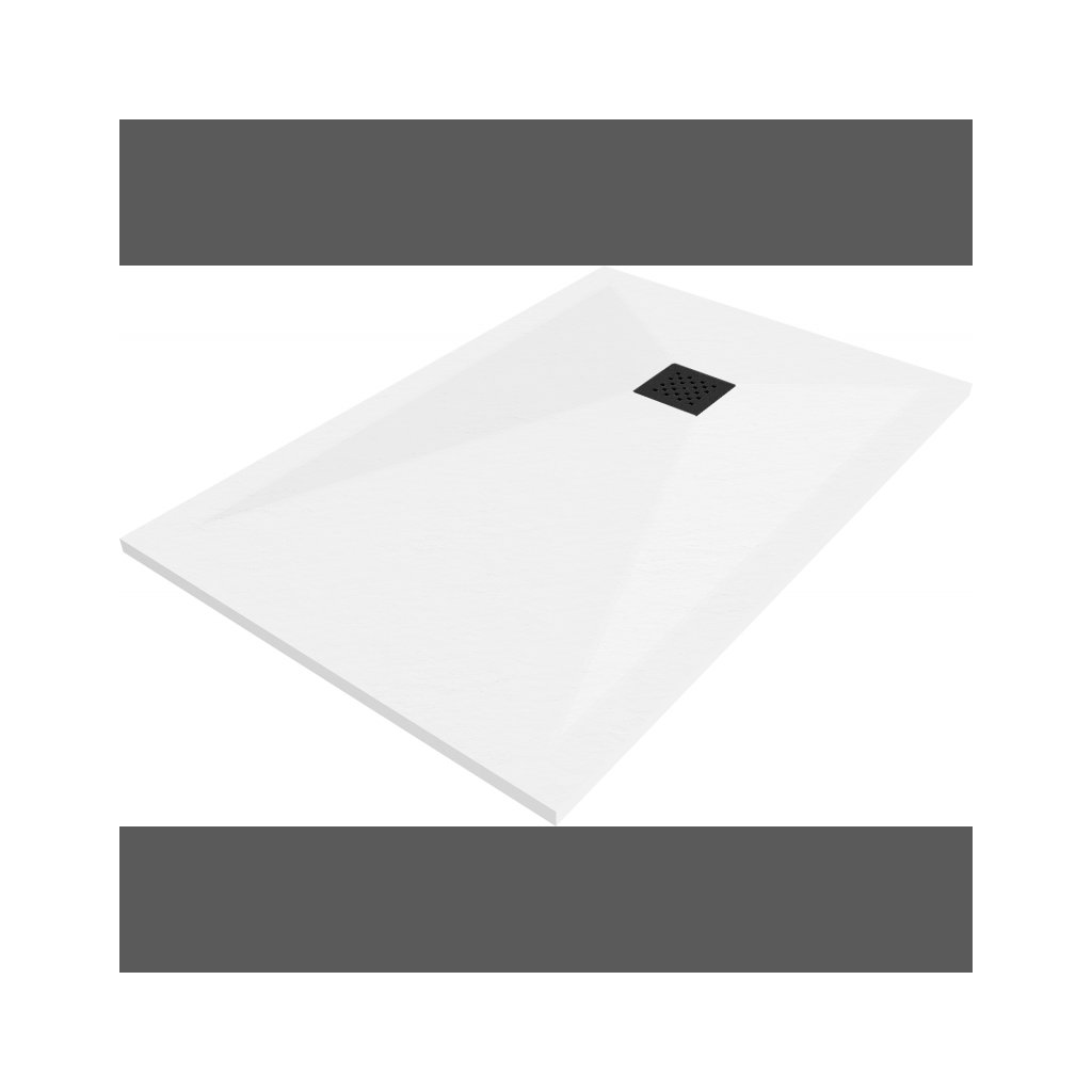 Mexen Stone+, obdĺžniková vanička z minerálneho kompozitu 80 x 70 cm, biela, čierna krytka, 44107080-B