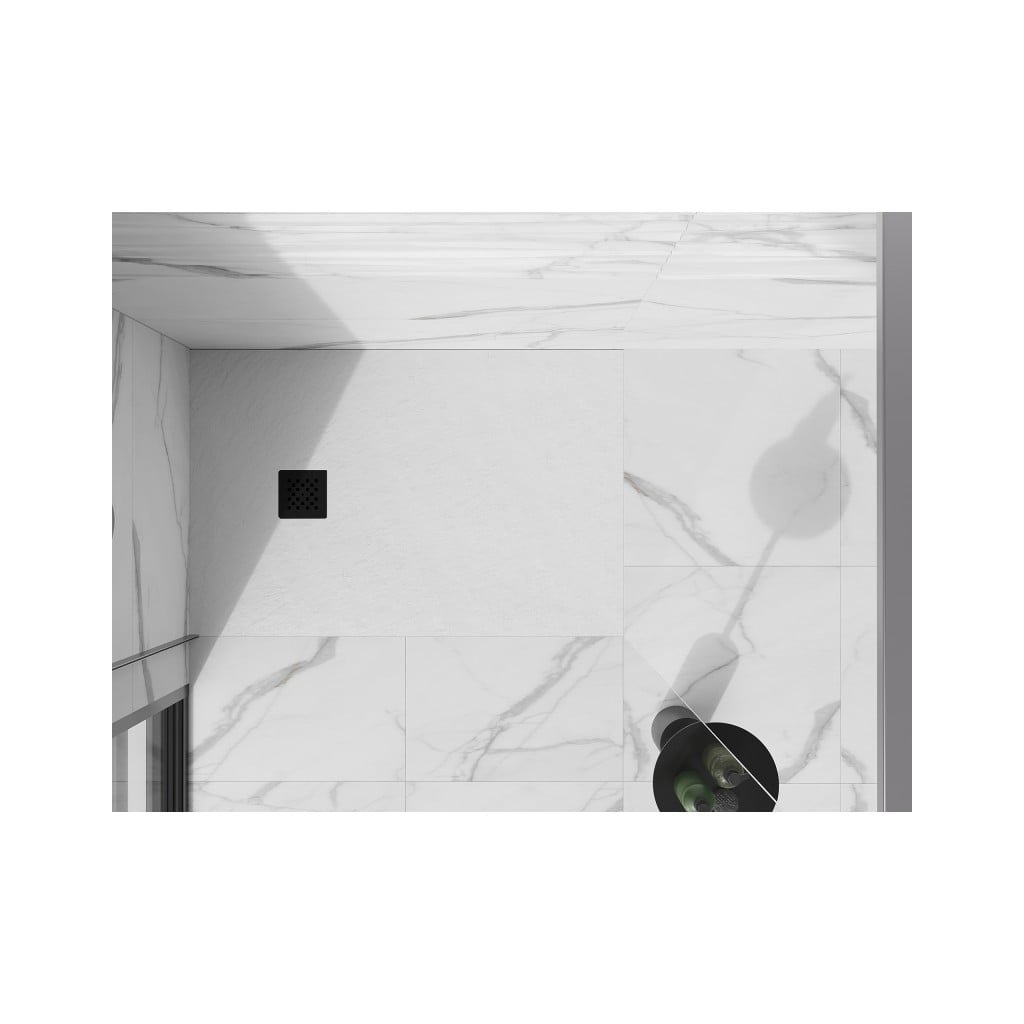 Mexen Stone+, obdĺžniková vanička z minerálneho kompozitu 90 x 70 cm, biela, čierna krytka, 44107090-B