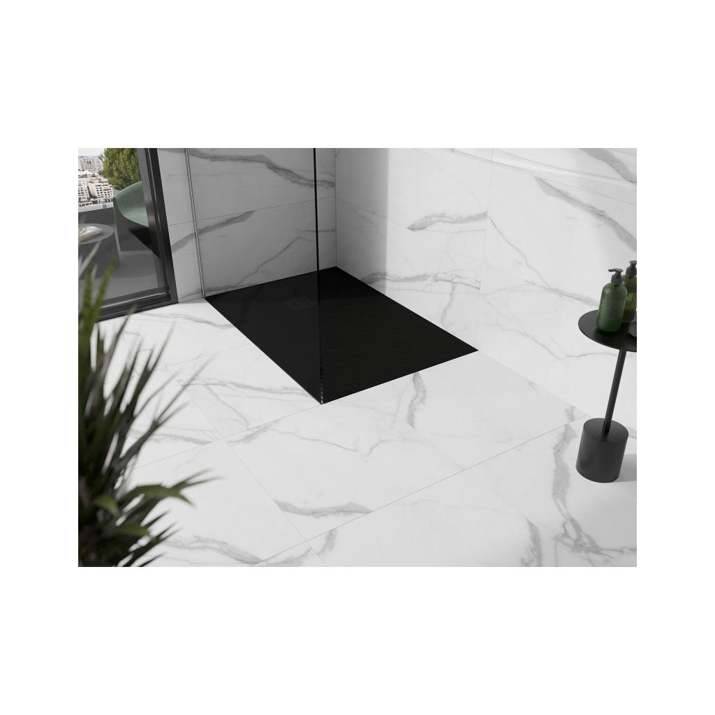 Mexen Stone+, obdĺžniková vanička z minerálneho kompozitu 90 x 70 cm, čierna, čierna krytka, 44707090-B