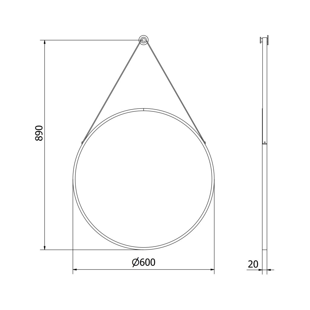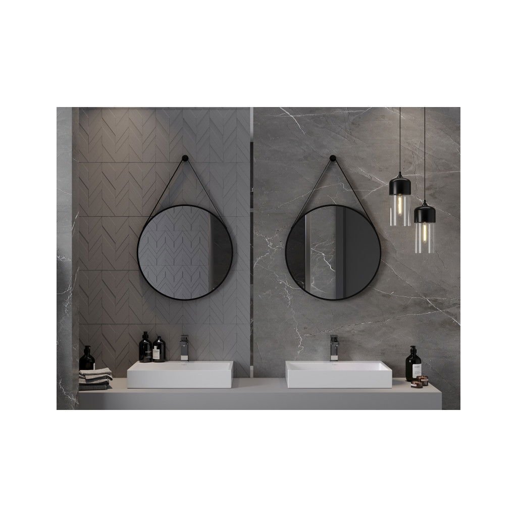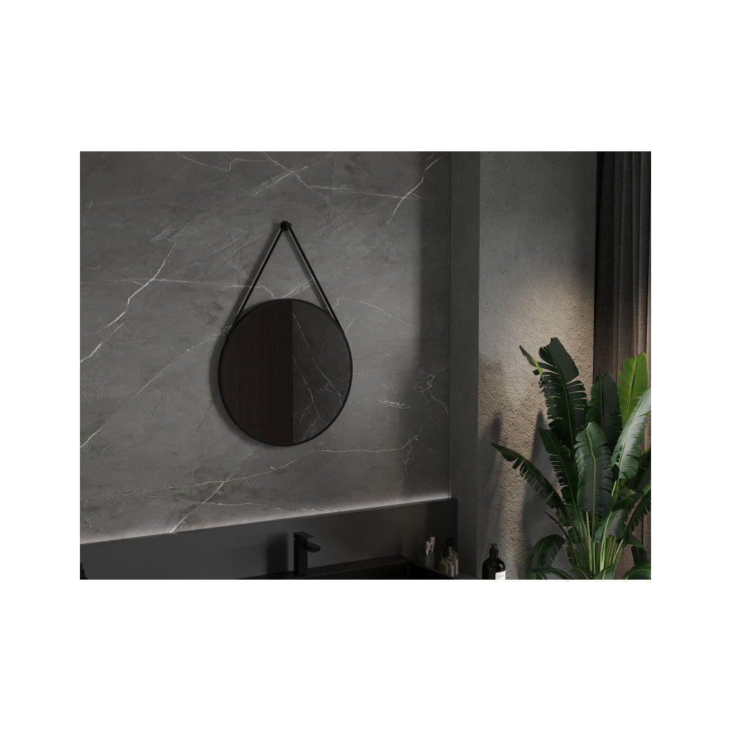 Mexen String, okrúhle kúpeľňové zrkadlo na pásiku 60 cm, farba rámu čierna matná, 9854-060-060-000-70