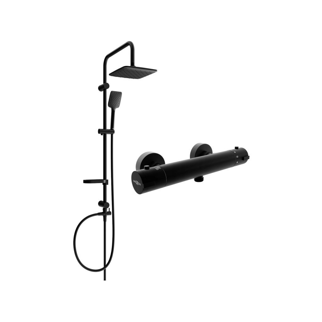 Mexen Sven, sprchový set s dažďovou sprchou a KAI termostatickou sprchovou batériou, čierna matná, 77100262-70