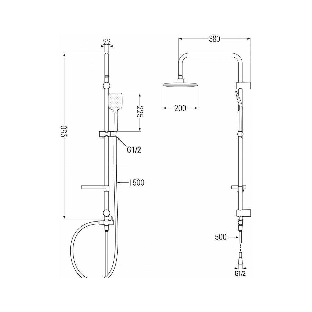 - Veľkosť sprchovej hlavice: 200x200 mm