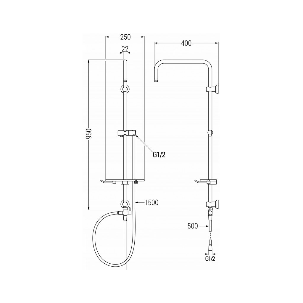 - Dĺžka sprchovej hadice: 1500 mm