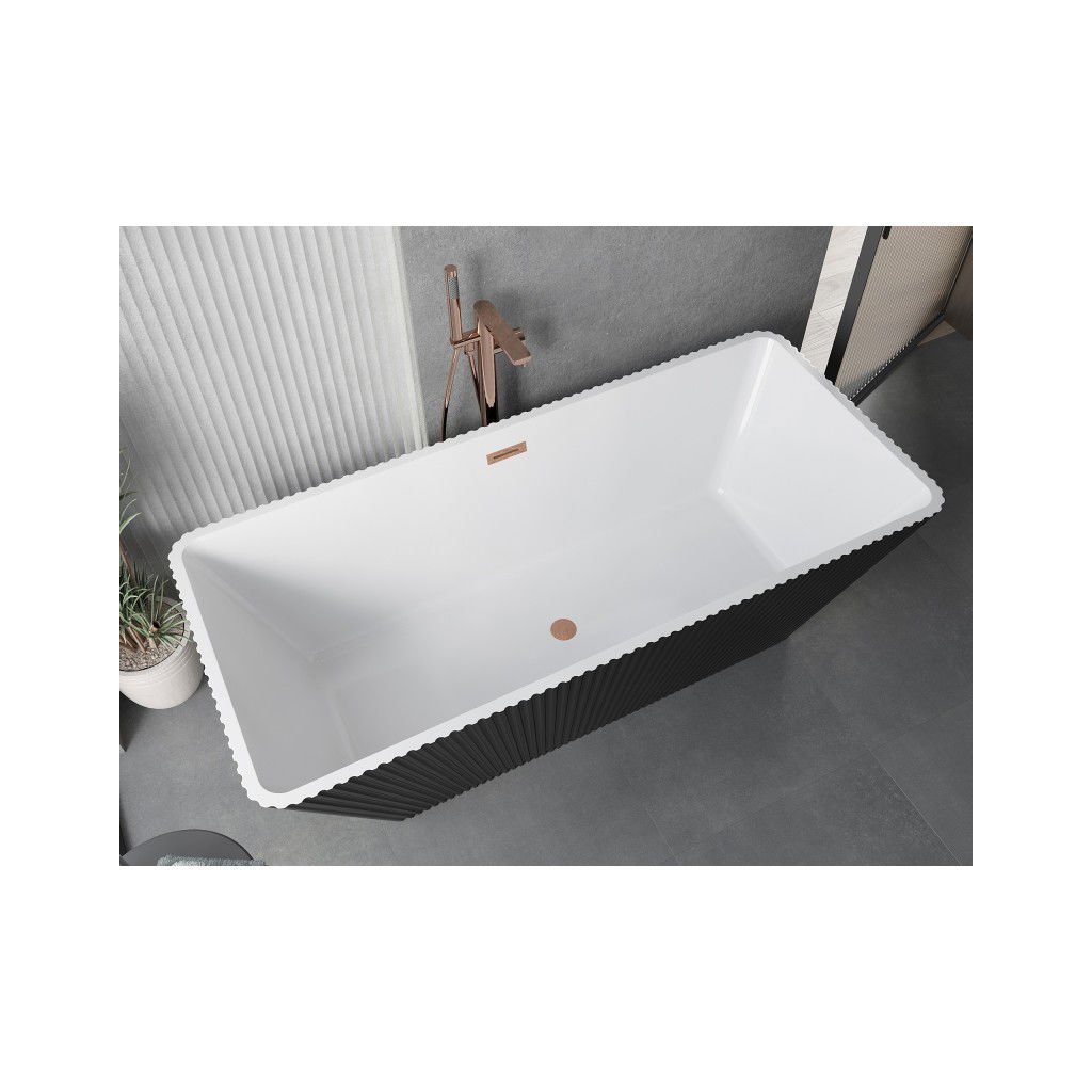 Mexen Tava, voľne stojaca ryhovaná vaňa 170 x 75 cm, biela-čierna, medený matný prepad, 52851707575-65