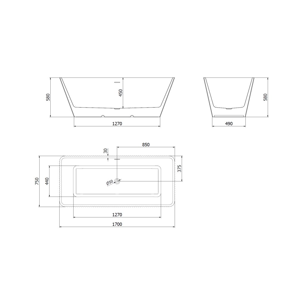 Mexen Tava, voľne stojaca ryhovaná vaňa 170 x 75 cm, biela lesklá, biely prepad, 52851707500-20