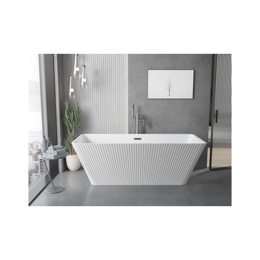 Mexen Tava, voľne stojaca ryhovaná vaňa 170 x 75 cm, biela lesklá, grafitový prepad, 52851707500-95
