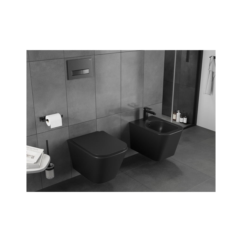 Mexen Teo, závesná WC misa 510x345x340 mm, Rimless Tornádo + WC sedadlo z duroplastu, čierna matná, 30850685T