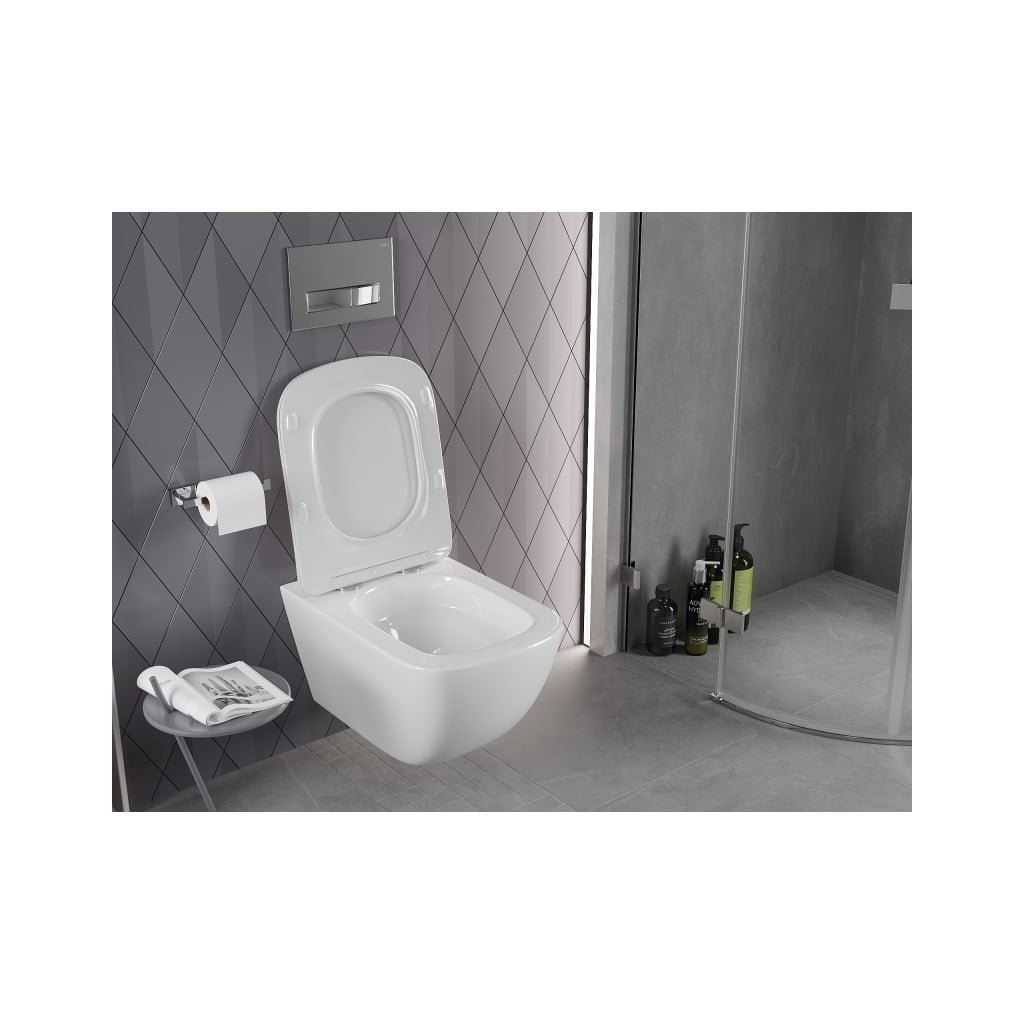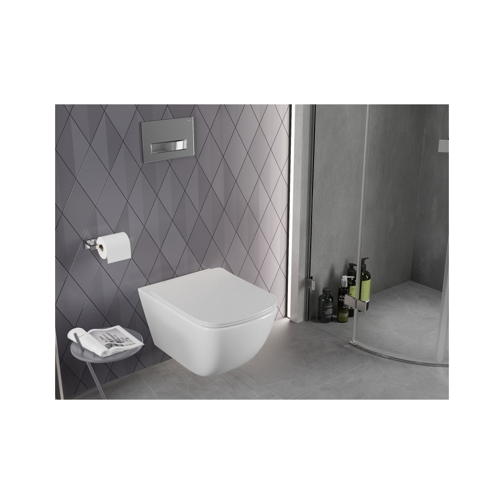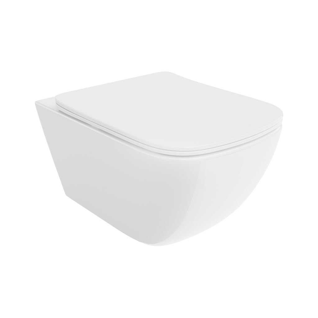 Mexen Timo, závesná WC misa 555x370x335 mm, Rimless Tornádo + WC sedadlo z duroplastu, biela lesklá, 30650200T