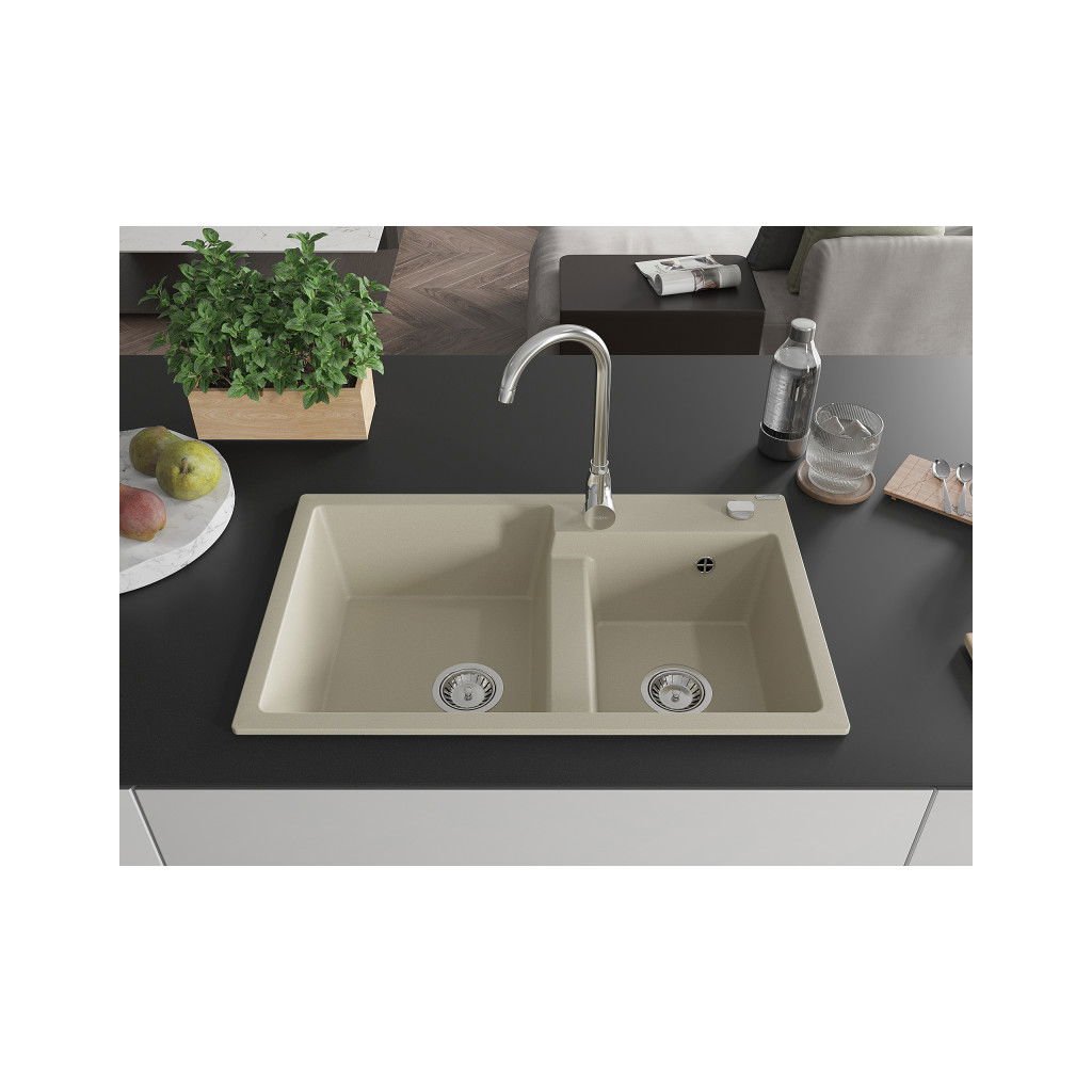 Mexen Tomas, granitový drez 800x500x190 mm, 2-komorový a chrómová batéria Telma, béžová, 6516-69-670200-00