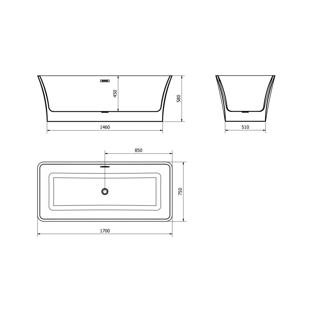 Mexen Tonia, voľne stojaca vaňa 170 x 75 cm, biela, biely prepad, 52171707500-20