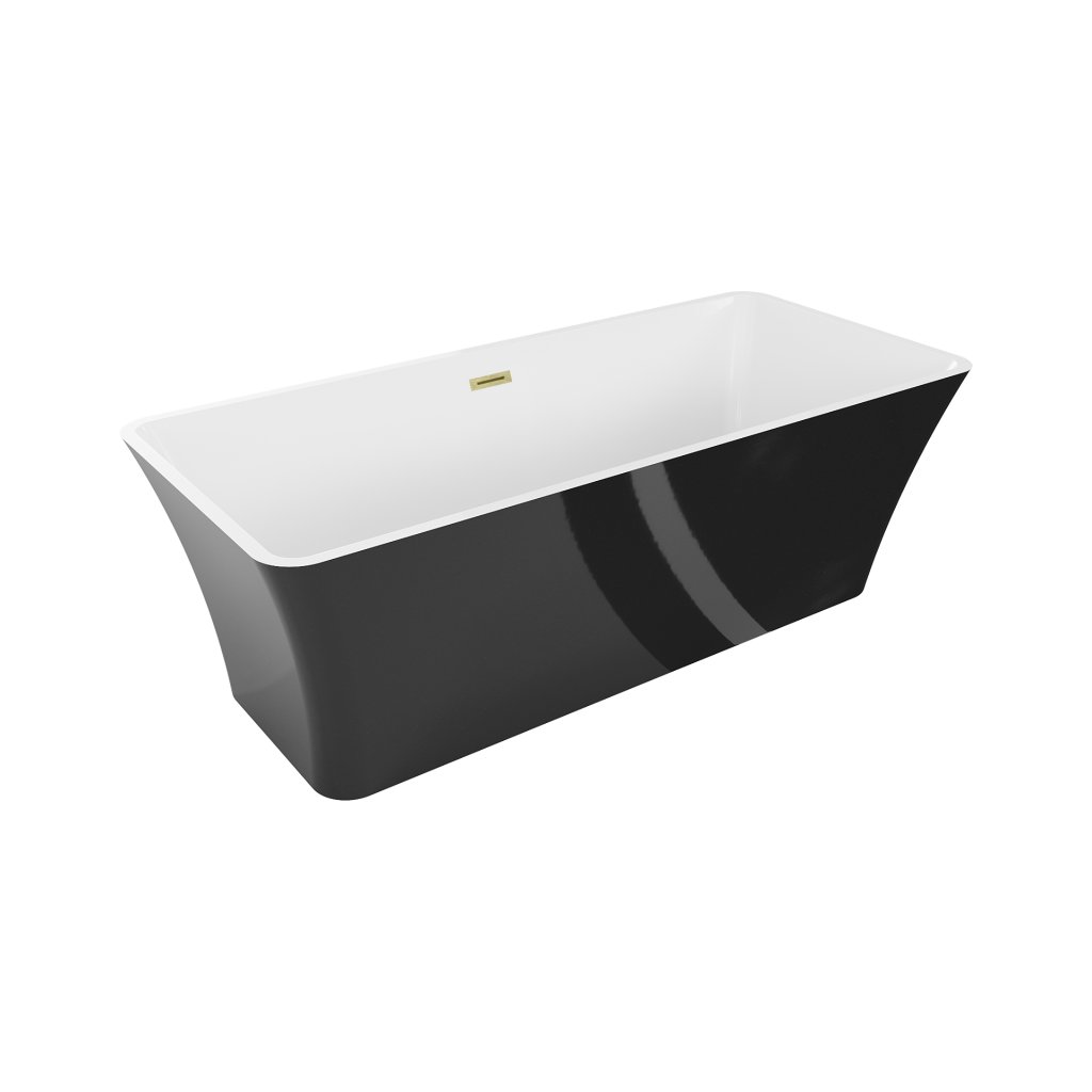 Mexen Tonia, voľne stojaca vaňa 170 x 75 cm, biela-čierna, zlatý matný prepad, 52171707575-55