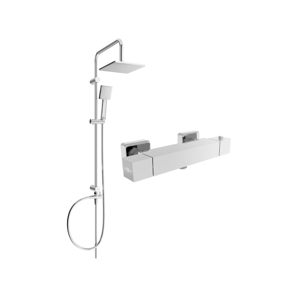 Mexen Tord, sprchový set s dažďovou sprchou a CUBE termostatickou sprchovou batériou, chrómová, 77200200-00