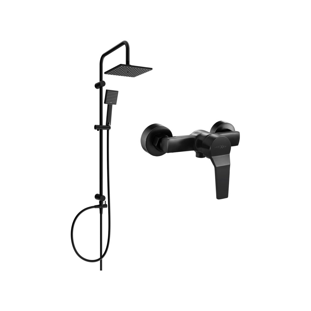 Mexen Tord sprchová súprava s ručnou a dažďovou sprchou + sprchová batéria Caro, čierna matná, 746640200-70