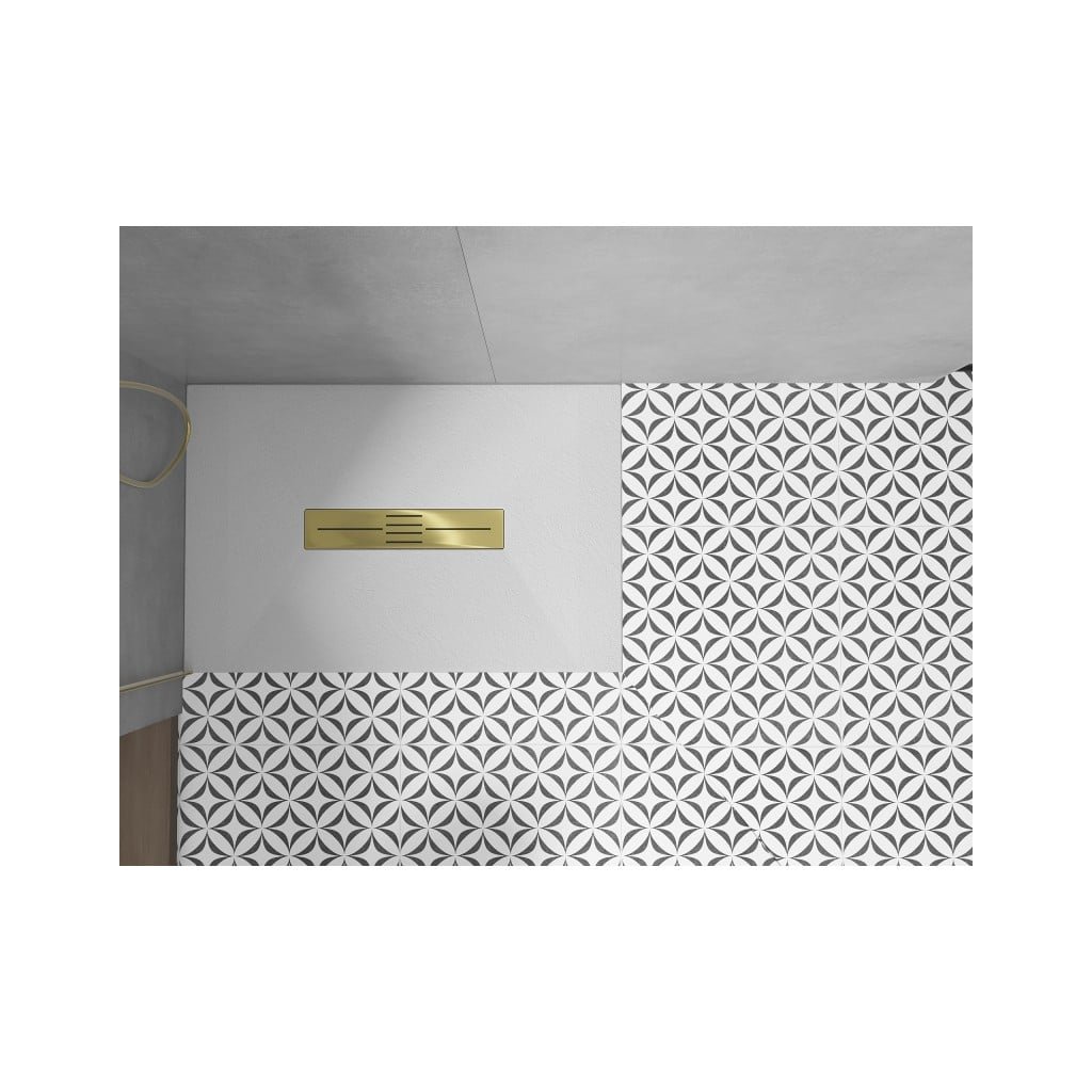 Mexen Toro, SMC obdĺžniková sprchová vanička 110 x 70 cm, biela, zlatá krytka, 43107011-G