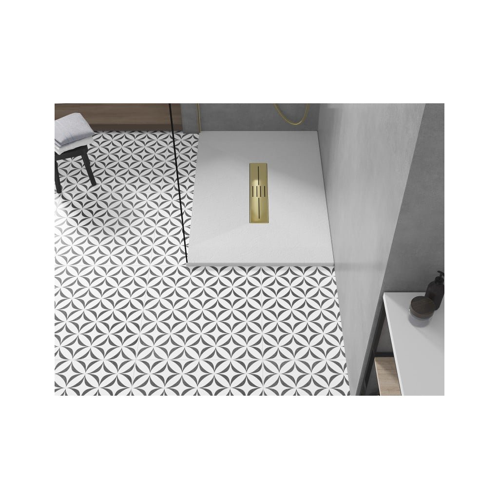 Mexen Toro, SMC obdĺžniková sprchová vanička 140 x 90 cm, biela, zlatá krytka, 43109014-G