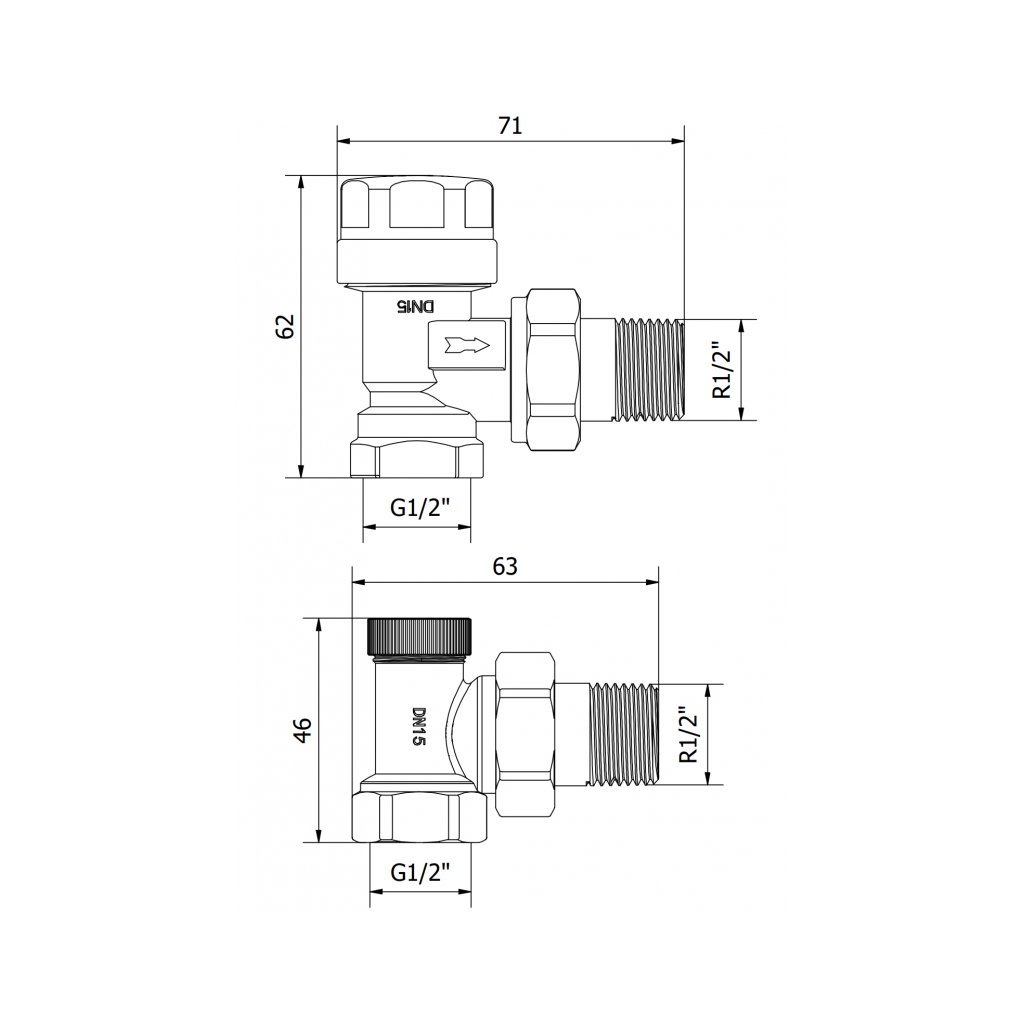 Mexen Uni-term, uhlové ventily radiátora G 1/2", oceľová, W913-012-01