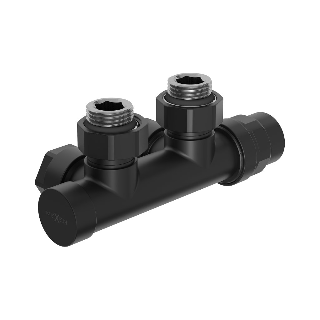 Mexen Uni-term, uhlový ventil pre radiátor s rozstupom 50mm, obojstranný, čierna matná, W907-000-70