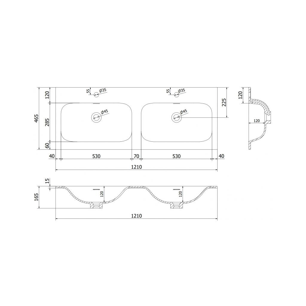 Technické údaje: Rozmery: 121x46,5x16,5 cm Hĺbka: 12 cm Typ: Zapustenie do dosky Farba: Biely lesk Materiál: Konglomerát Prepadový otvor: Áno Otvor na batériu: ÁnoDodatočné parametre