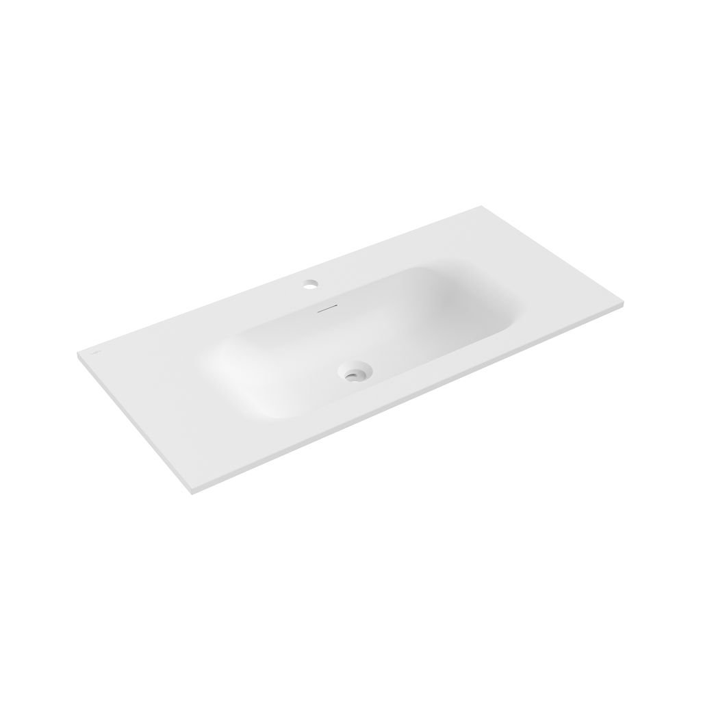 Technické údaje: Rozmery: 101x46,5x16,5 cm Hĺbka: 12 cm Typ: Zapustenie do dosky Farba: biela matná Materiál: konglomerát Prepadový otvor: Áno Otvor na batériu: ÁnoDodatočné parametre