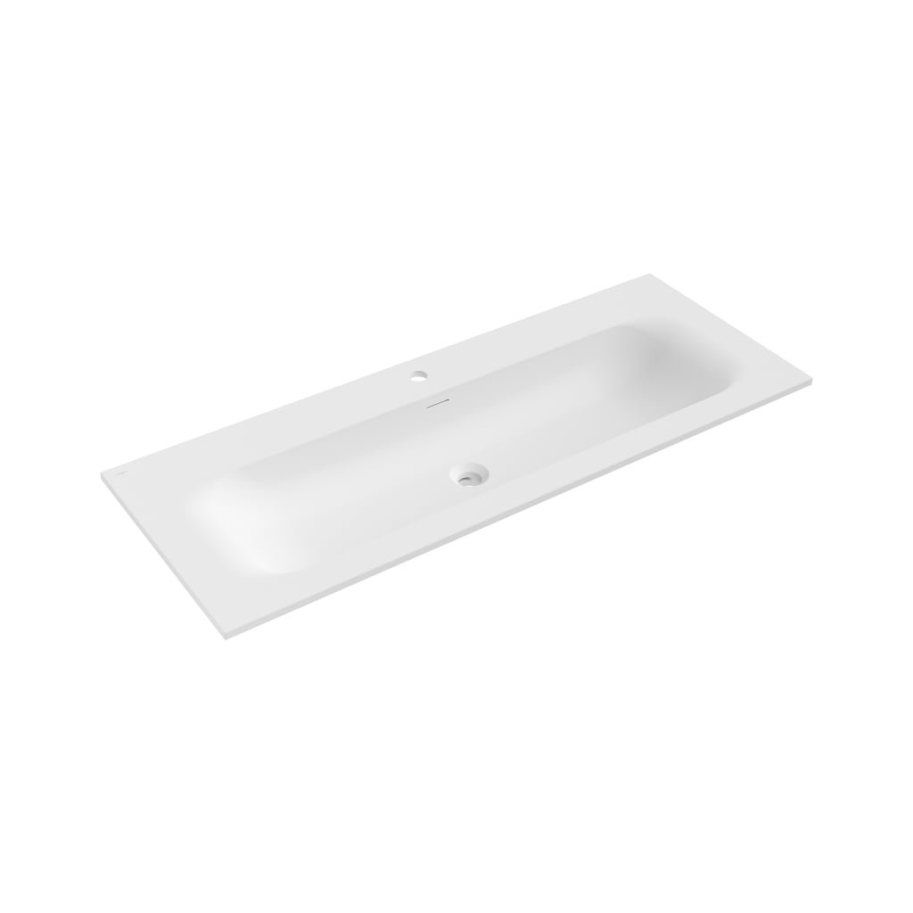 Technické údaje: Rozmery: 121x46,5x16,5 cm Hĺbka: 12 cm Typ: Zapustenie do pracovnej dosky Farba: Biela matná Materiál: Konglomerát Prepadový otvor: Áno Otvor na batériu: ÁnoDodatočné parametre